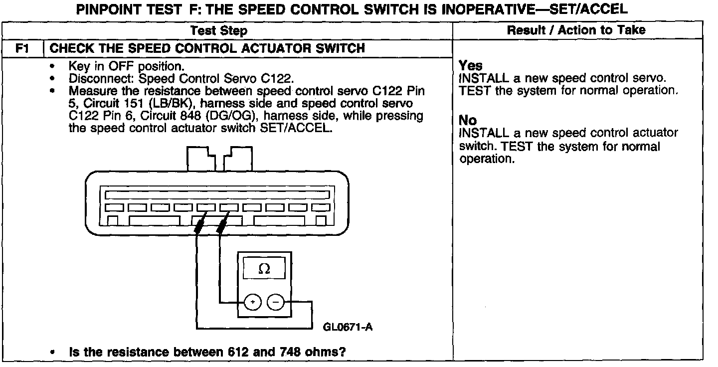 PINPOINT TEST F: THE SPEED CONTROL SWITCH IS INOPERATIVE - SET/ACCEL