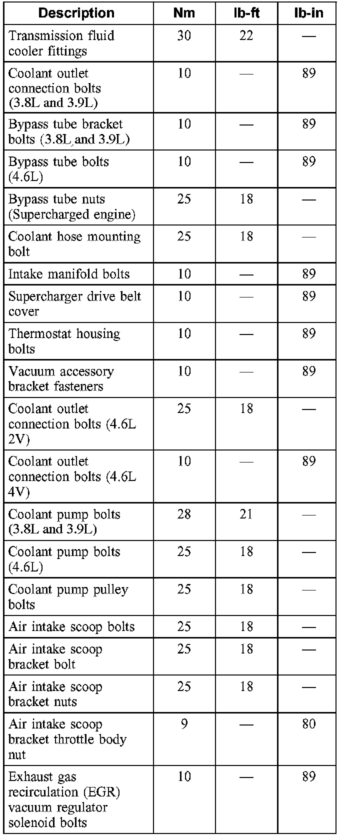 Torque Specifications