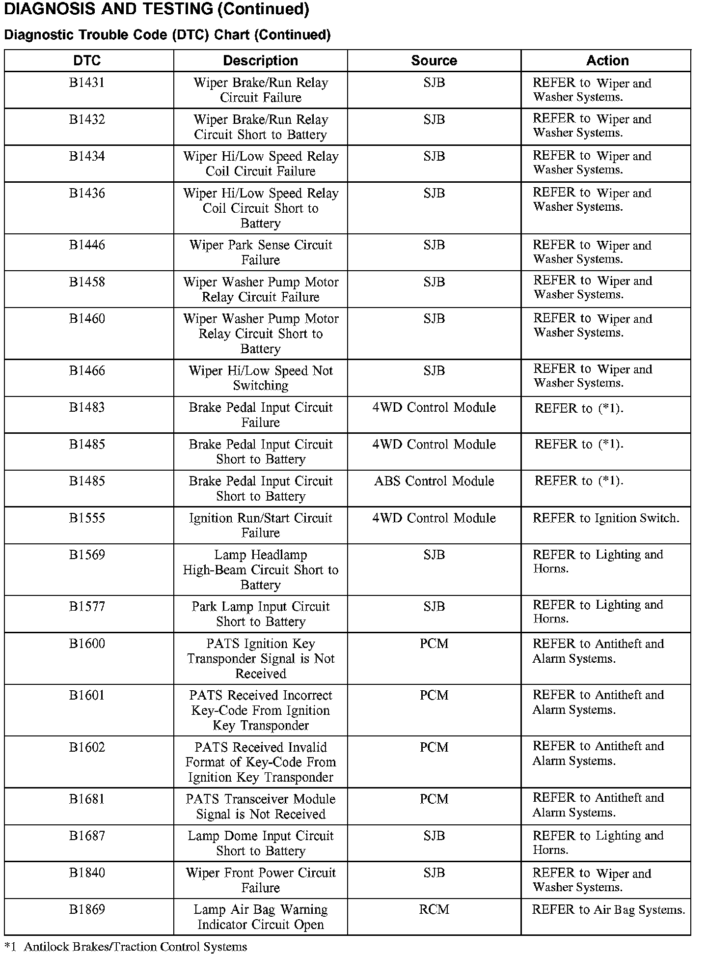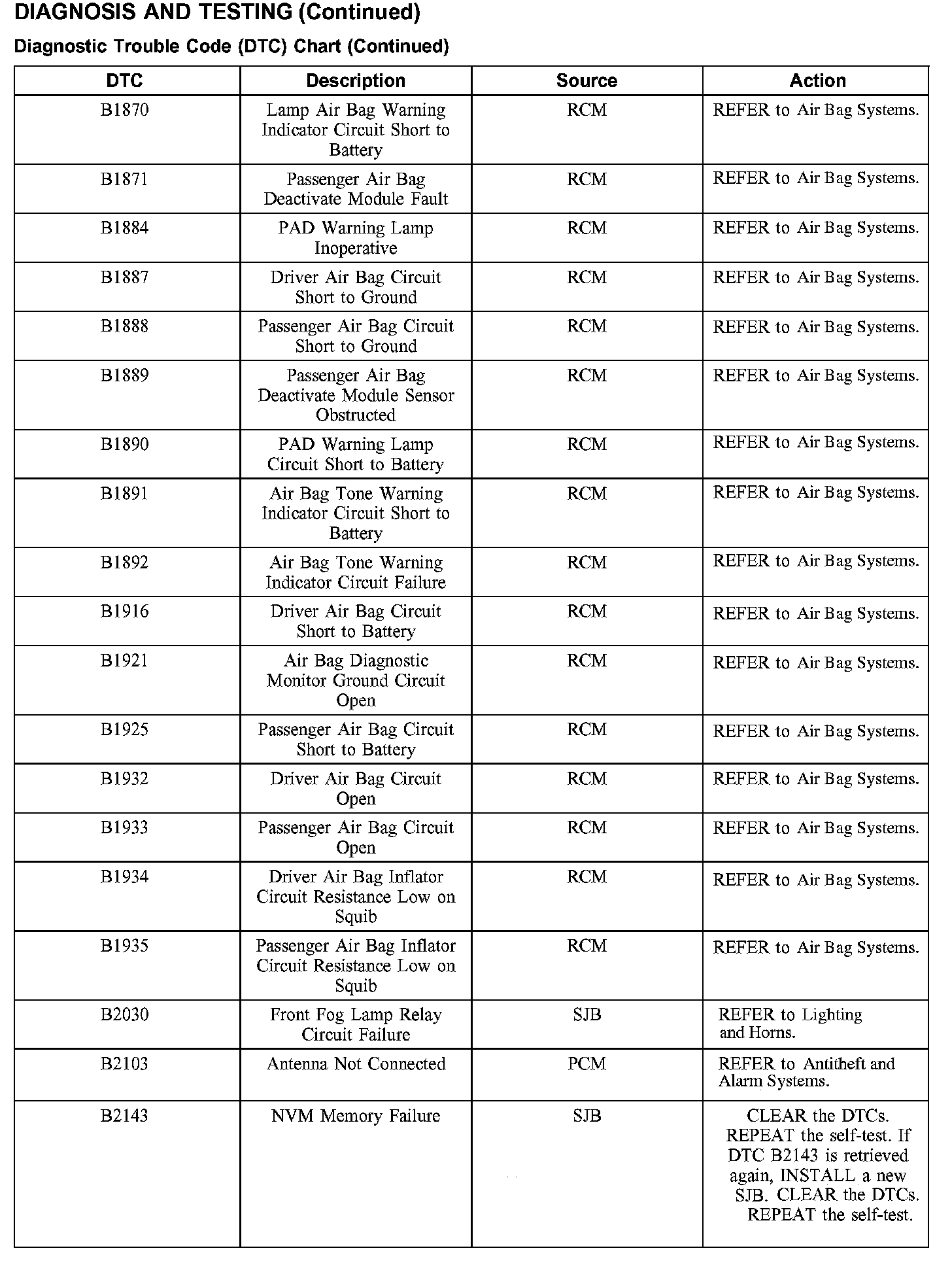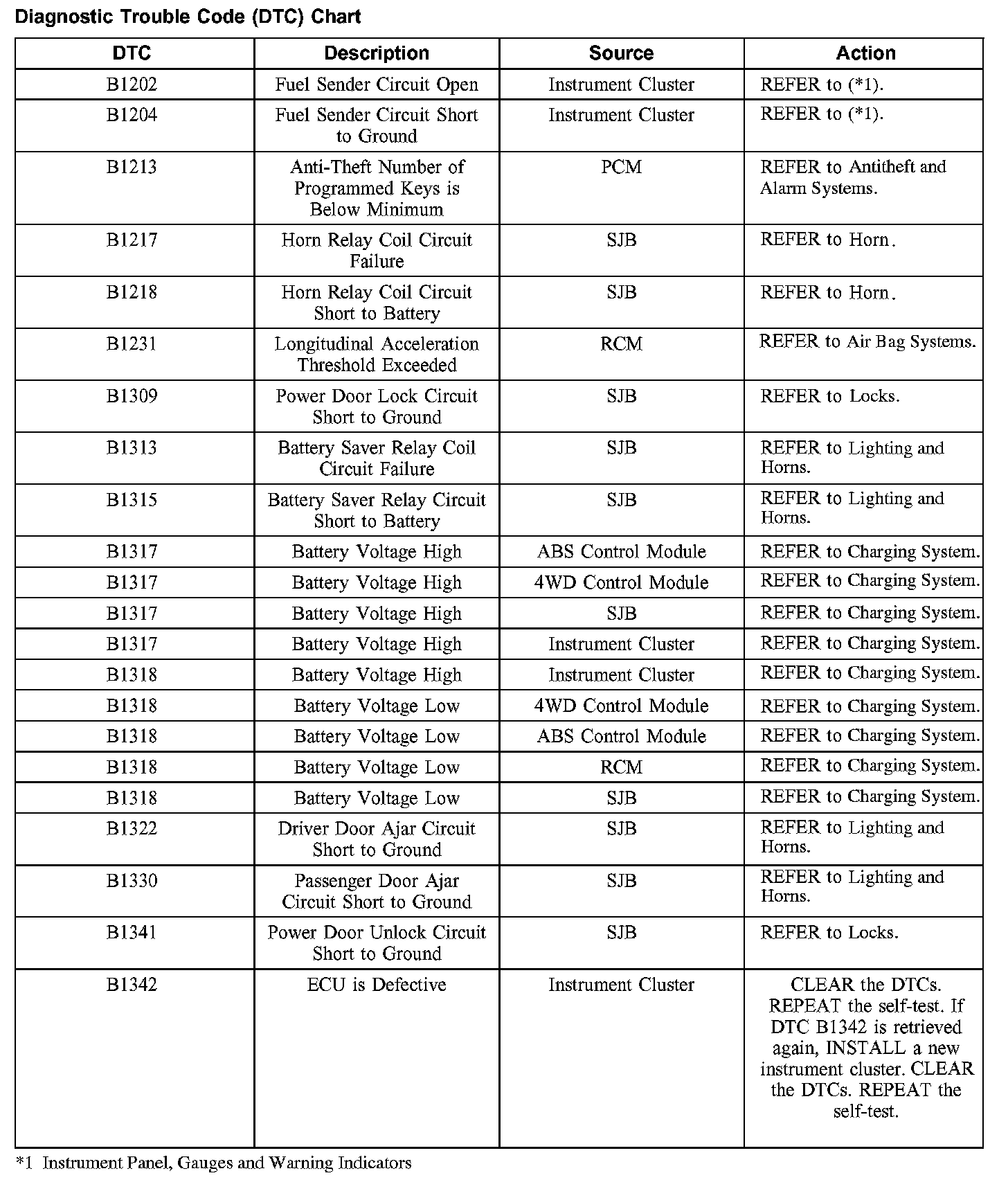 DIAGNOSTIC TROUBLE CODE (DTC) CHARTDTC Chart B1202-B1342:
