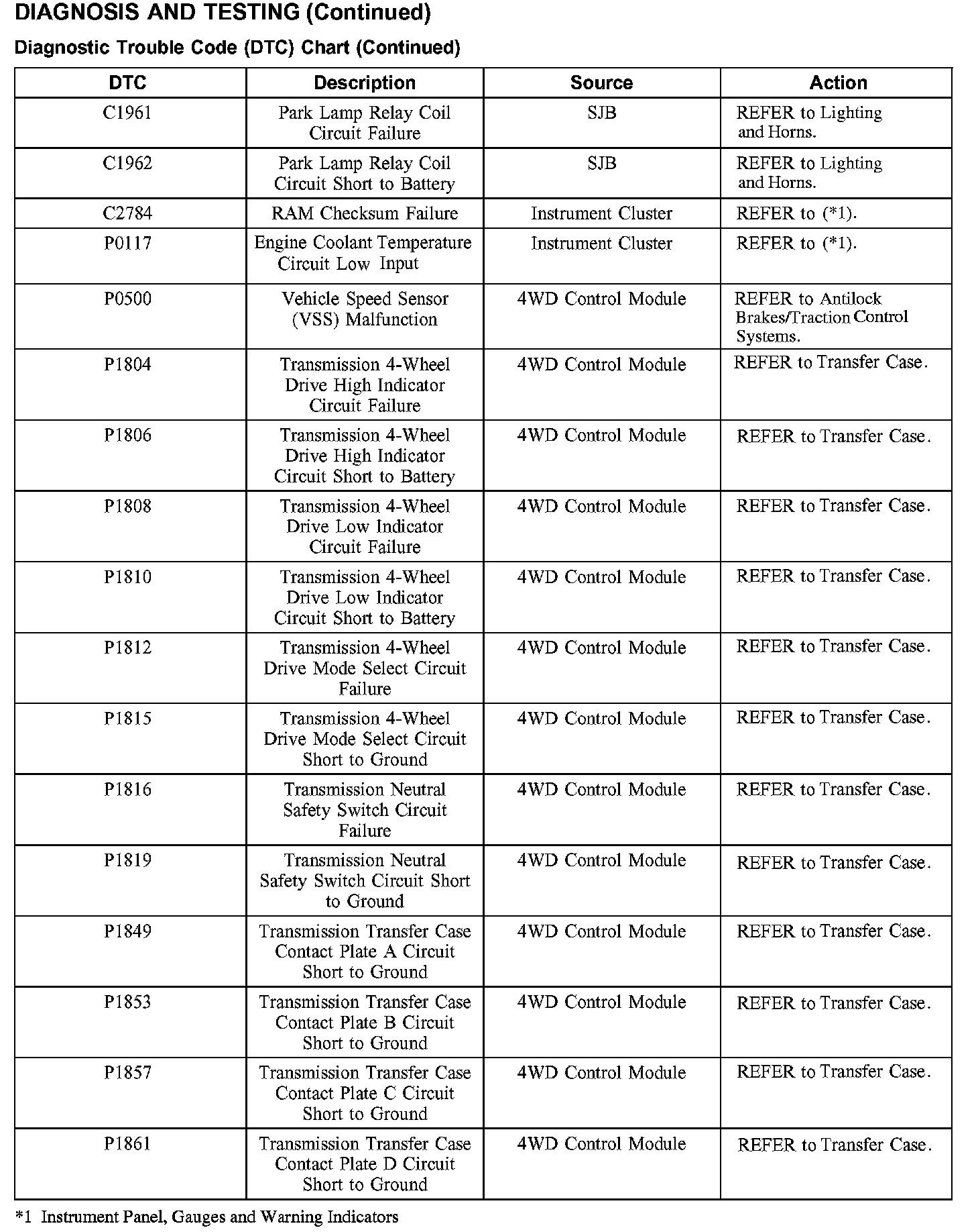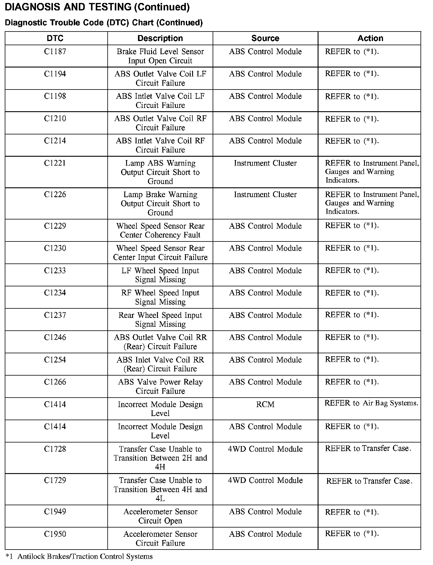DTC Chart C1187-C1950: