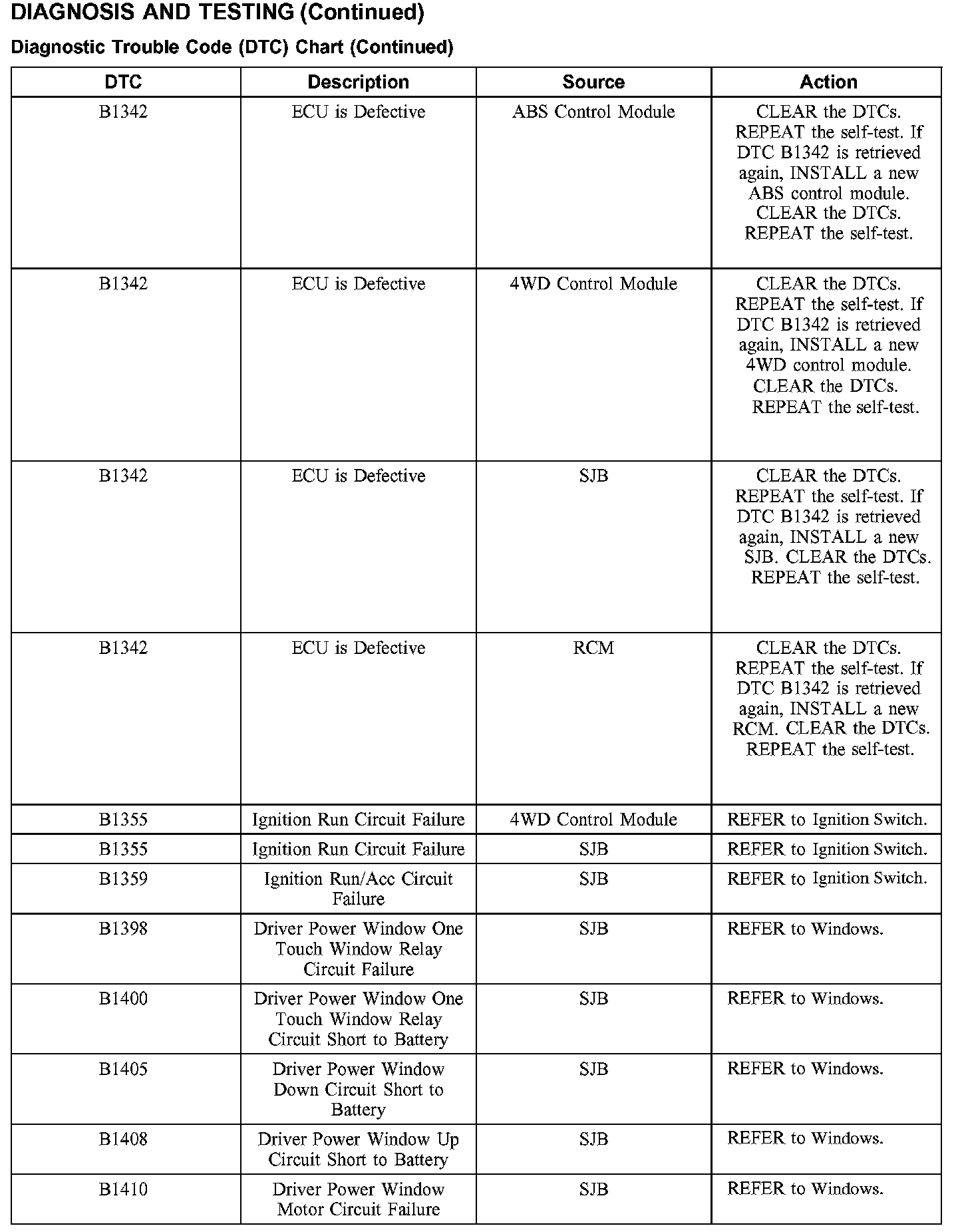DTC Chart B1342-B1410:
