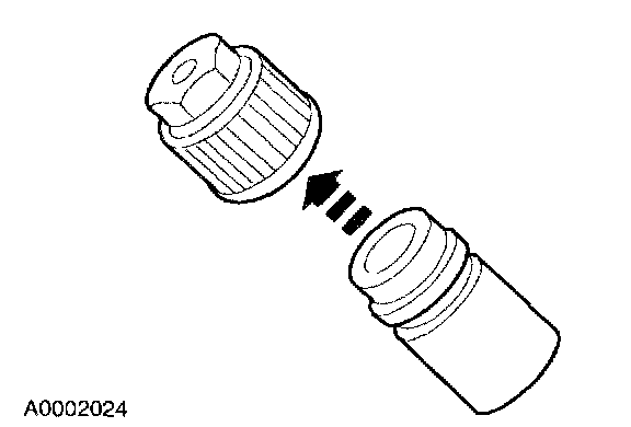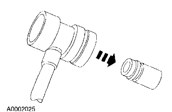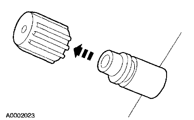 2. Remove the A/C charging valve cap from the low-pressure service gauge port valve.