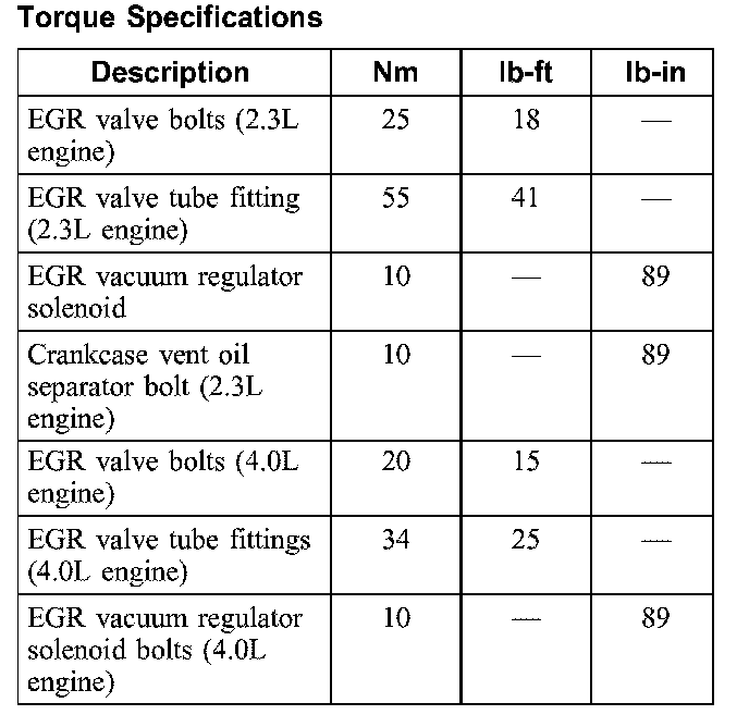 Torque Specifications:
