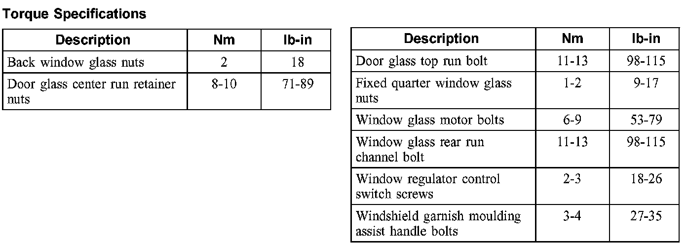 Torque Specifications: