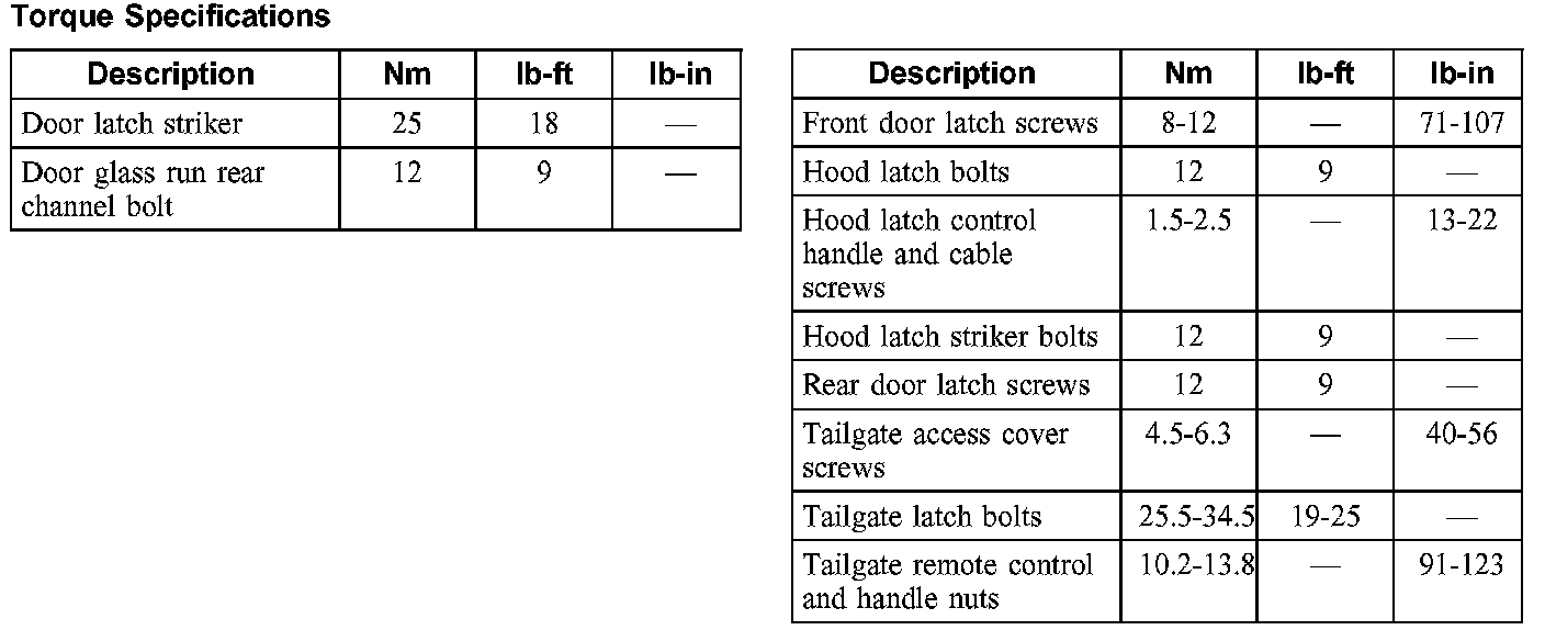 Torque Specifications: