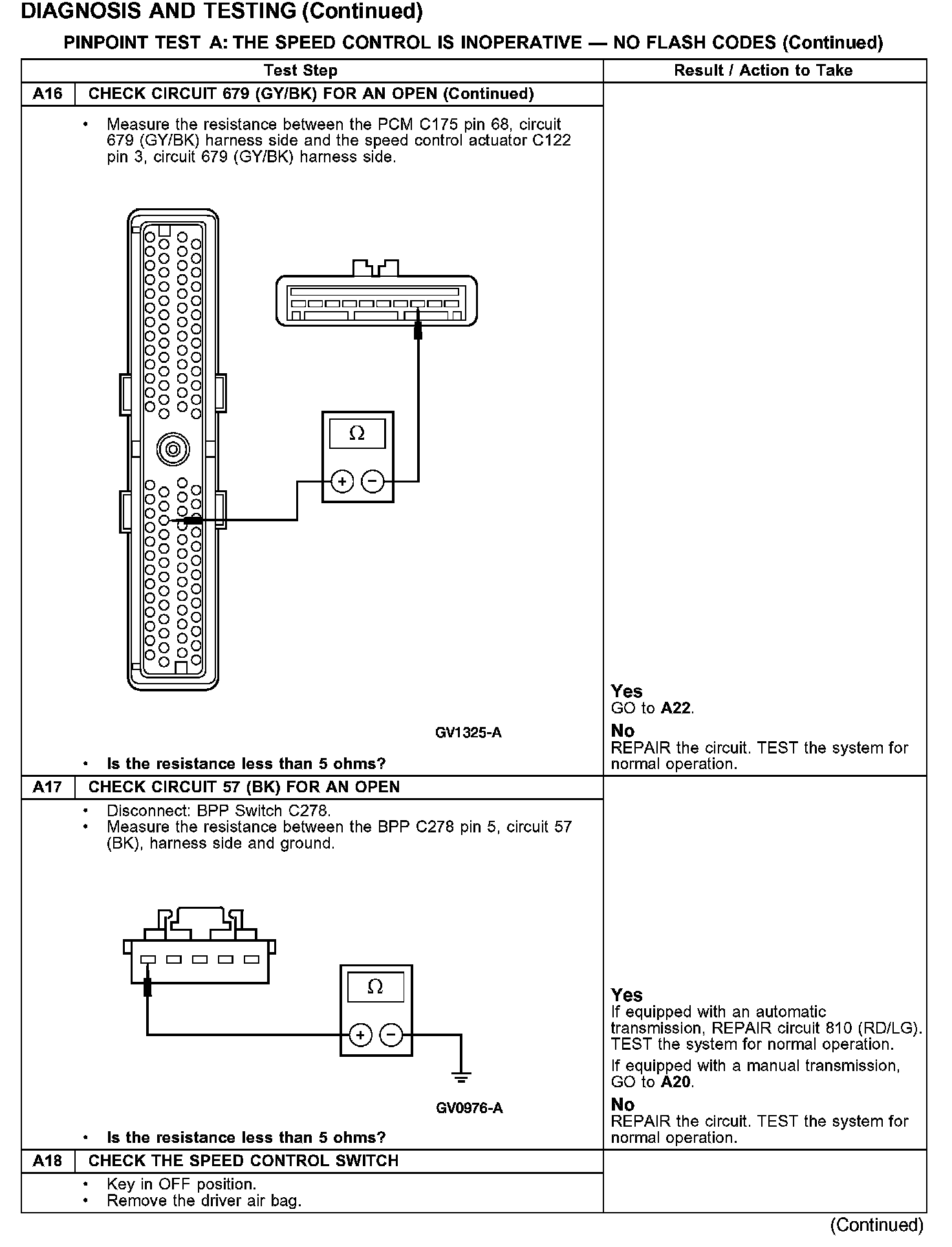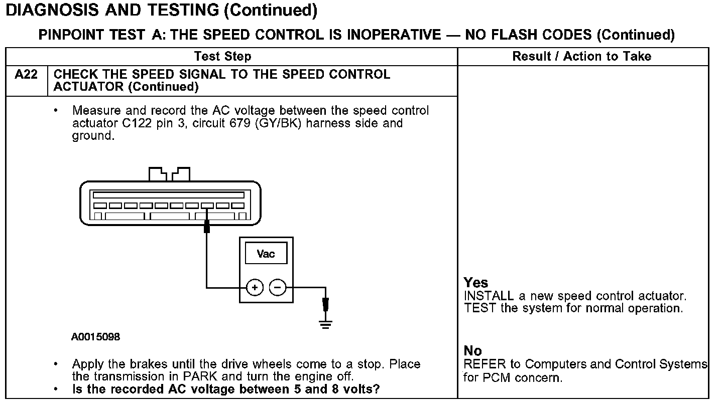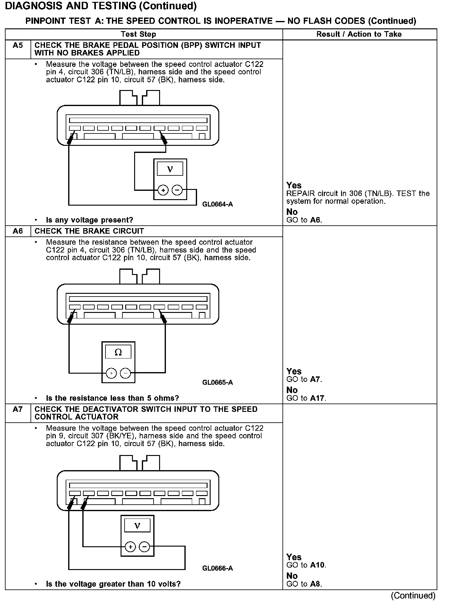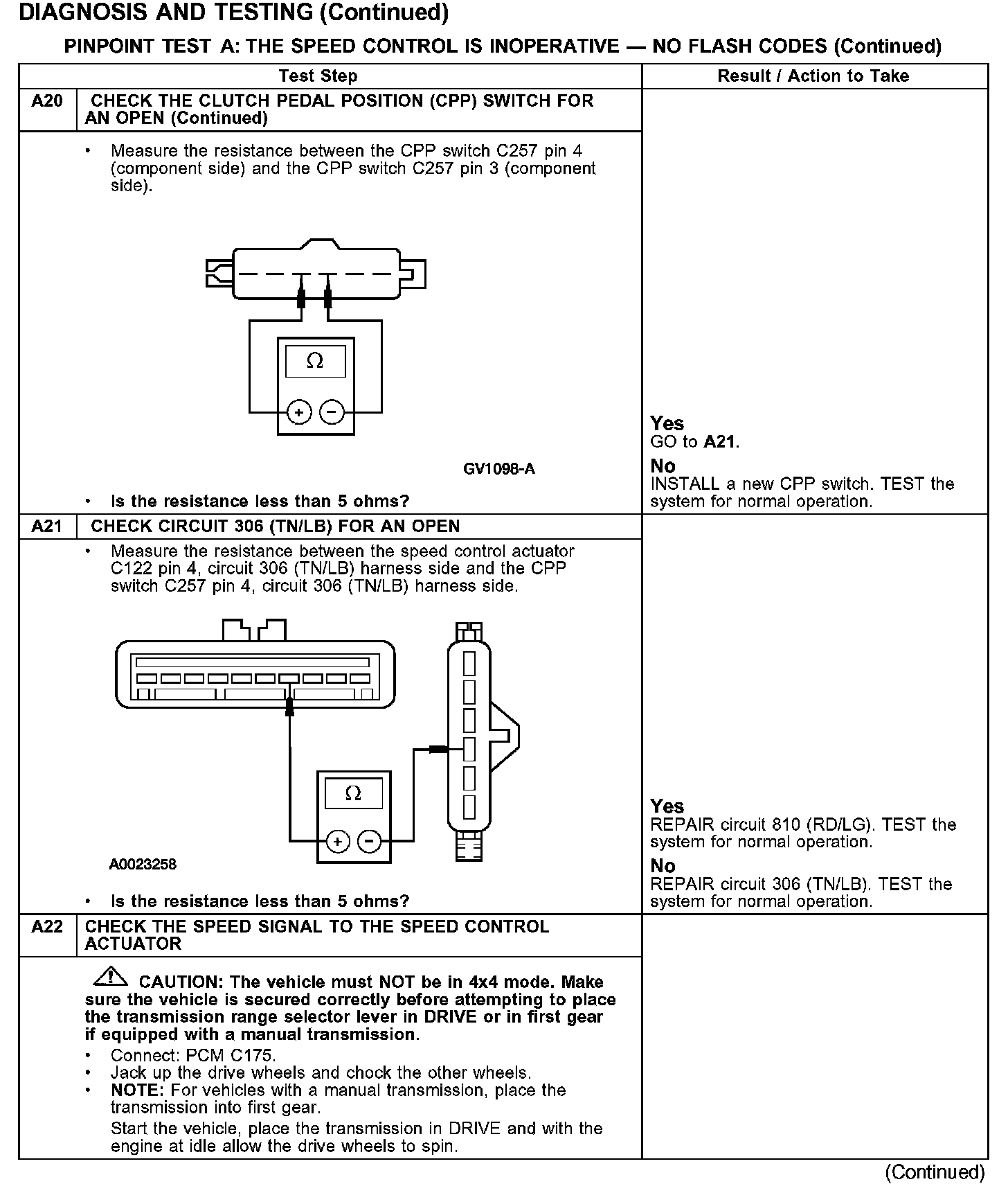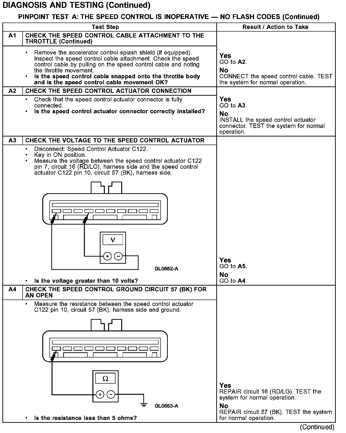 PINPOINT TEST A: THE SPEED CONTROL IS INOPERATIVE - NO FLASH CODES