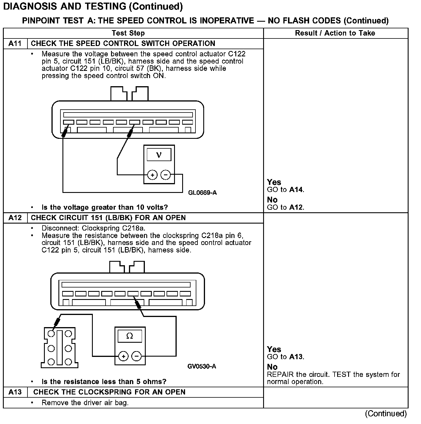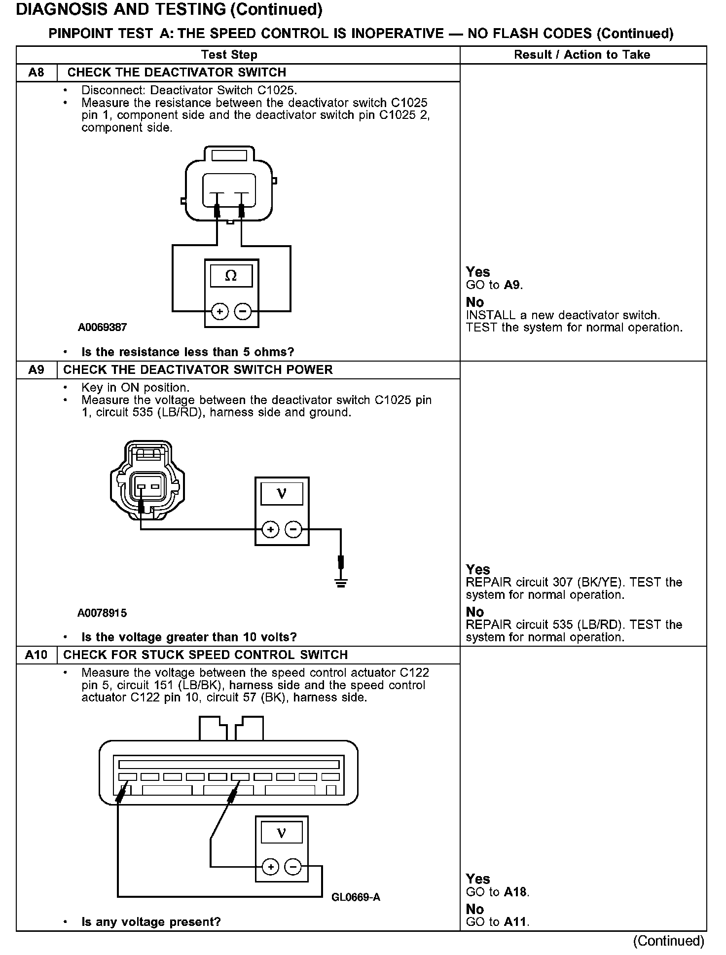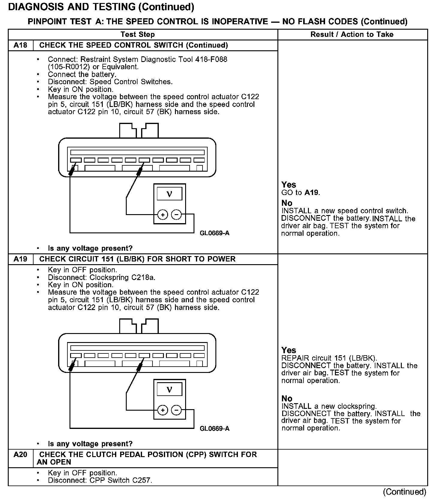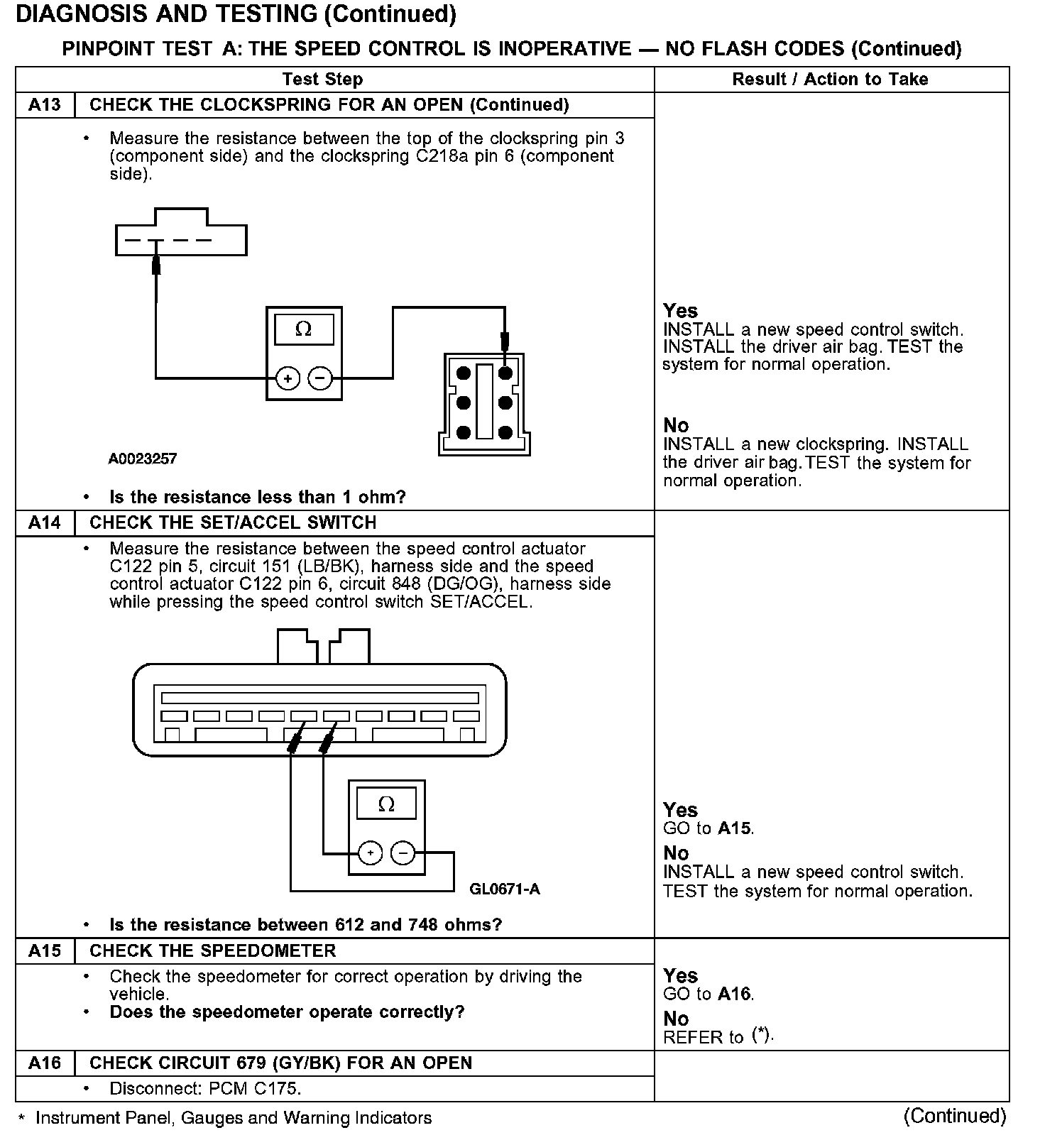 PINPOINT TEST A: THE SPEED CONTROL IS INOPERATIVE - NO FLASH CODES