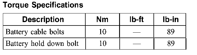 Torque Specifications: