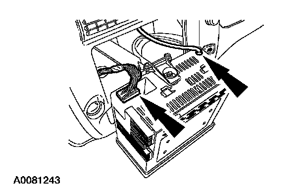 2. Disconnect the audio unit electrical connector and antenna cable.