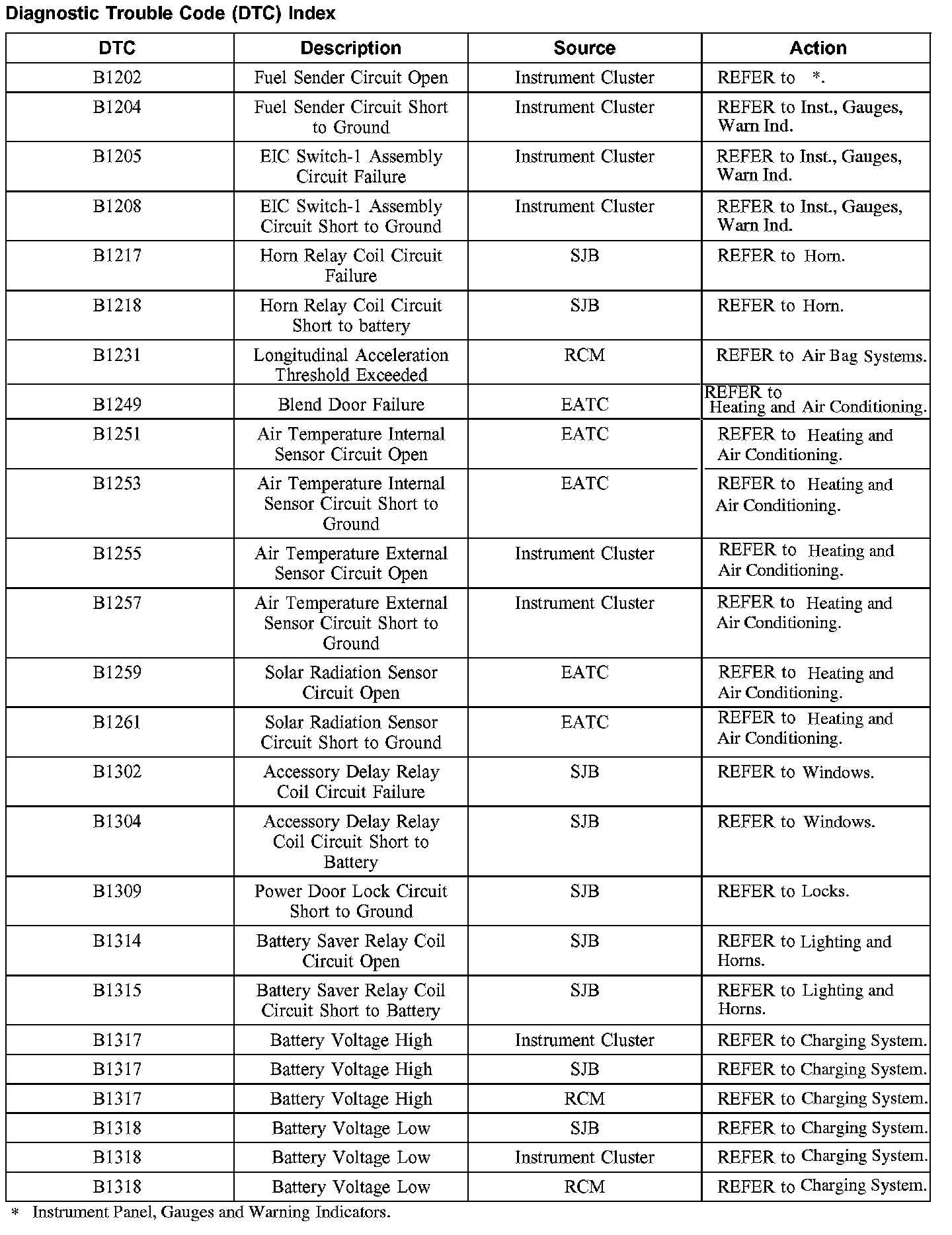 DTC Index B1202 - B1318: