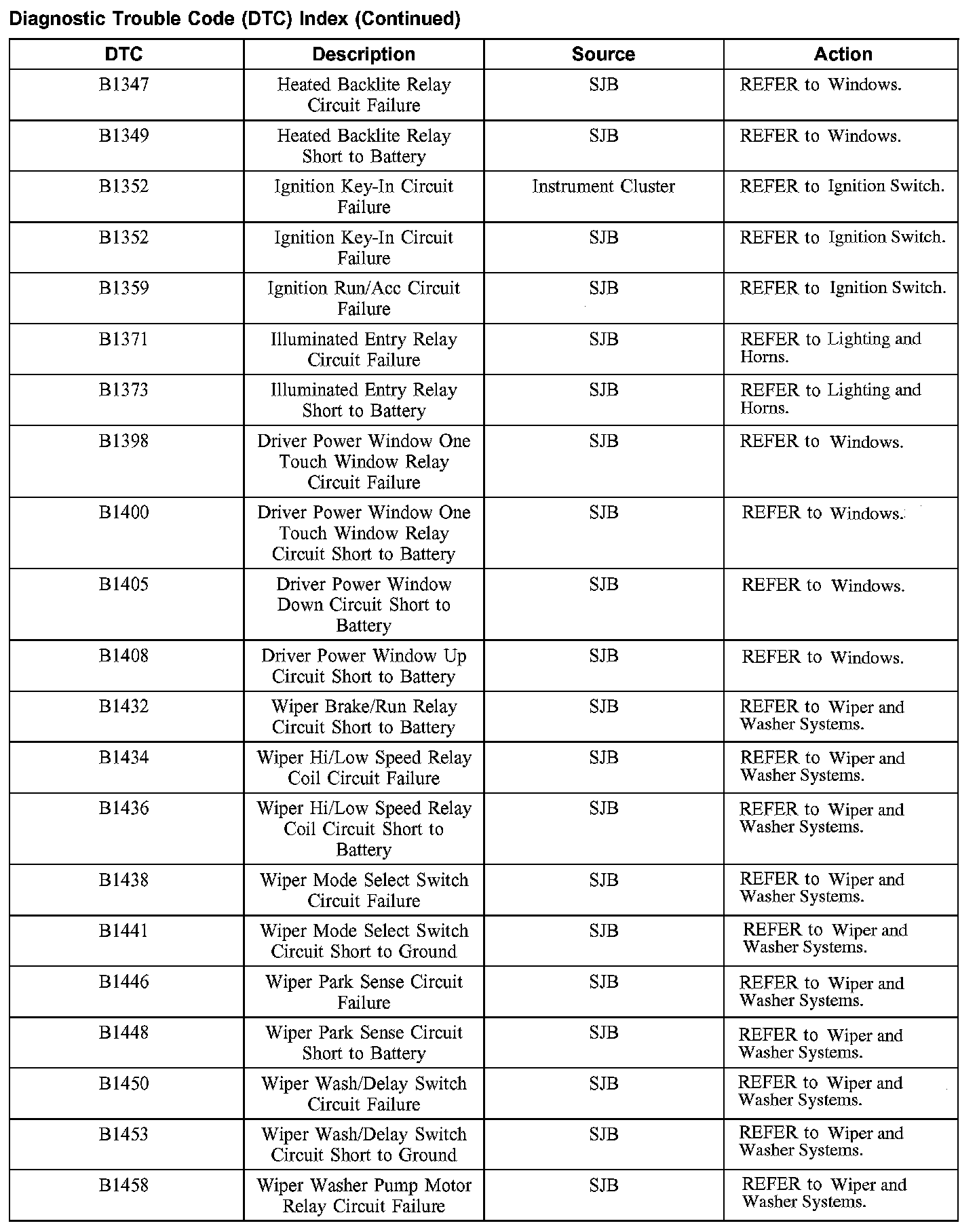 DTC Index B1347 - B1458: