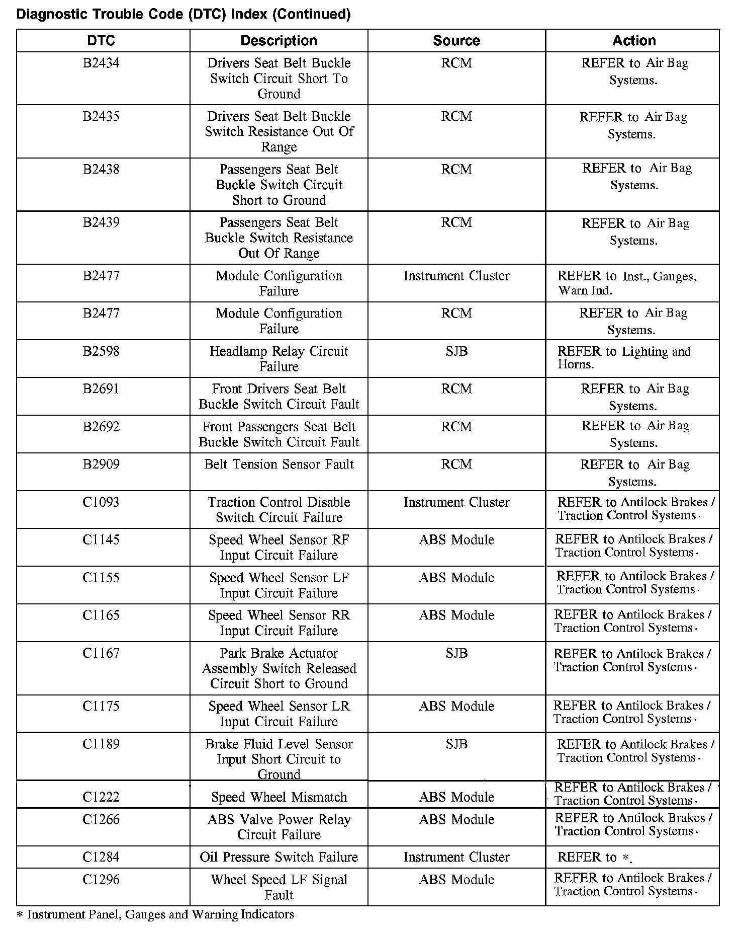Home >> Ford >> 2004 >> Taurus V6-3.0L VIN U >> Repair and Diagnosis >> Body and Frame >> Body Control Systems >> Testing and Inspection >> Diagnostic Trouble Code Descriptions