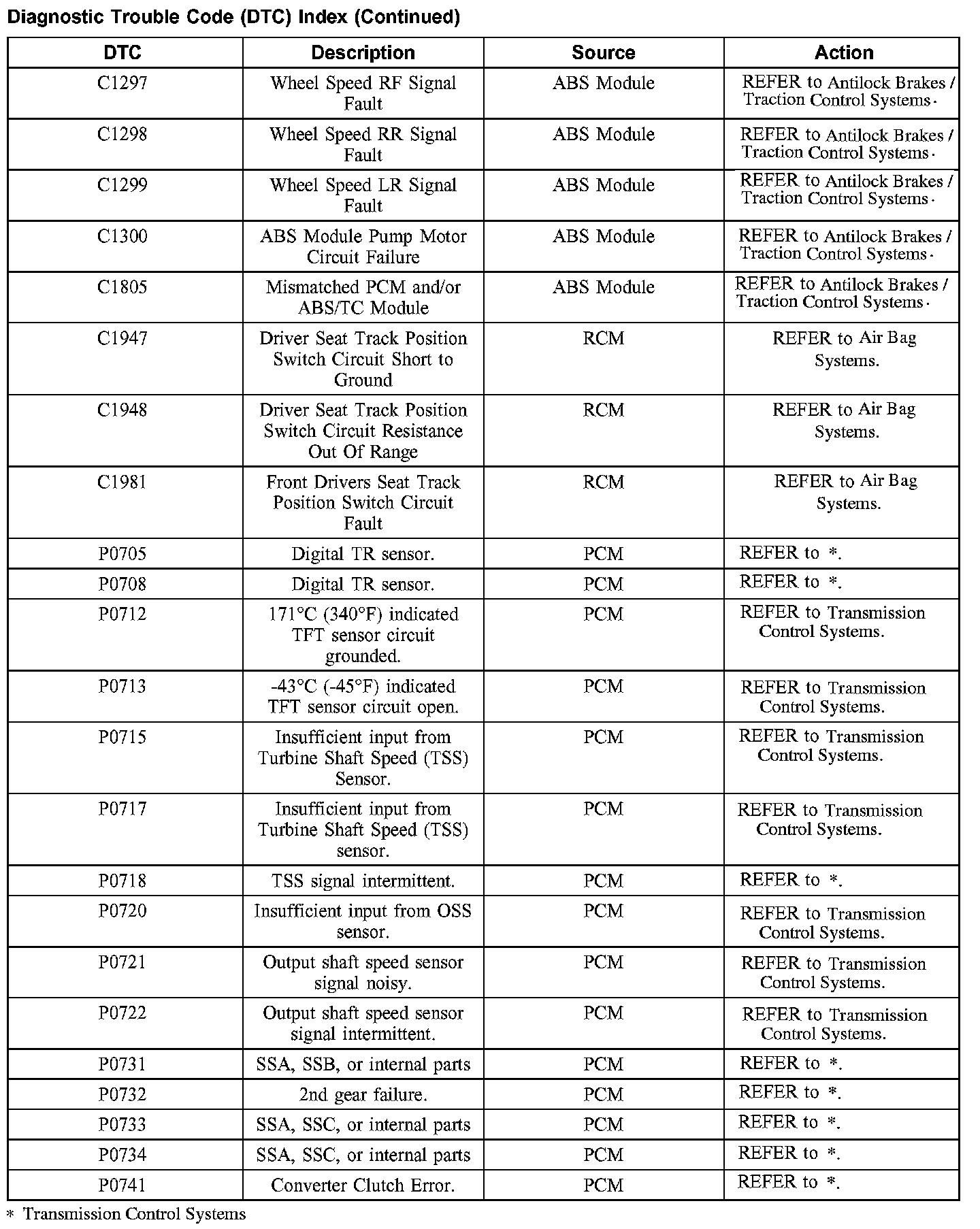 DTC Index C1297 - P0741: