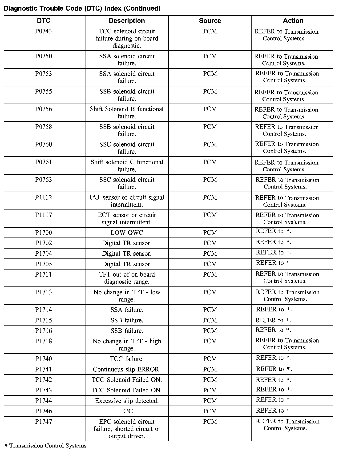 DTC Index P0743 - P1747: