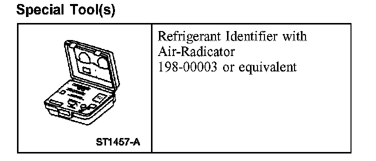1. NOTE: An A/C refrigerant analyzer must be used to identify gas samples taken directly from the refrigeration system or storage containers prior to recovering or charging the refrigerant system.
