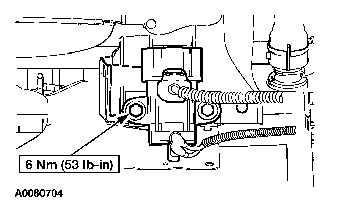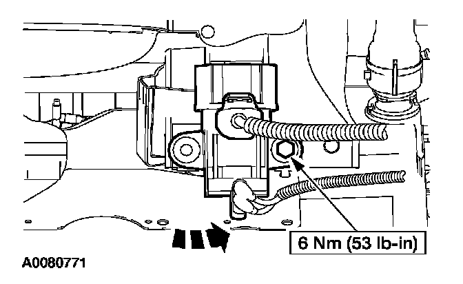 6. Remove the EGR vacuum regulator solenoid inboard fastener.