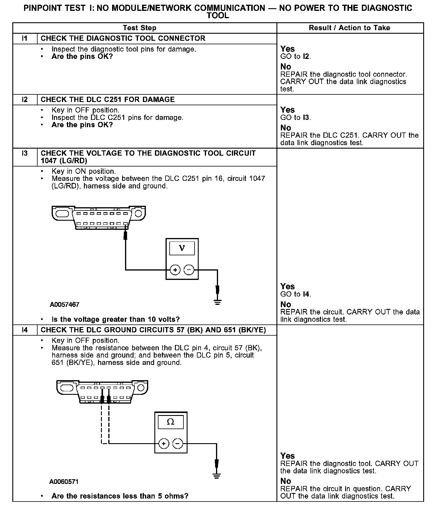 PINPOINT TEST I: NO MODULE/NETWORK COMMUNICATION NO POWER TO THE DIAGNOSTIC TOOL