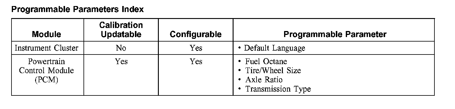 Programmable Parameters Index: