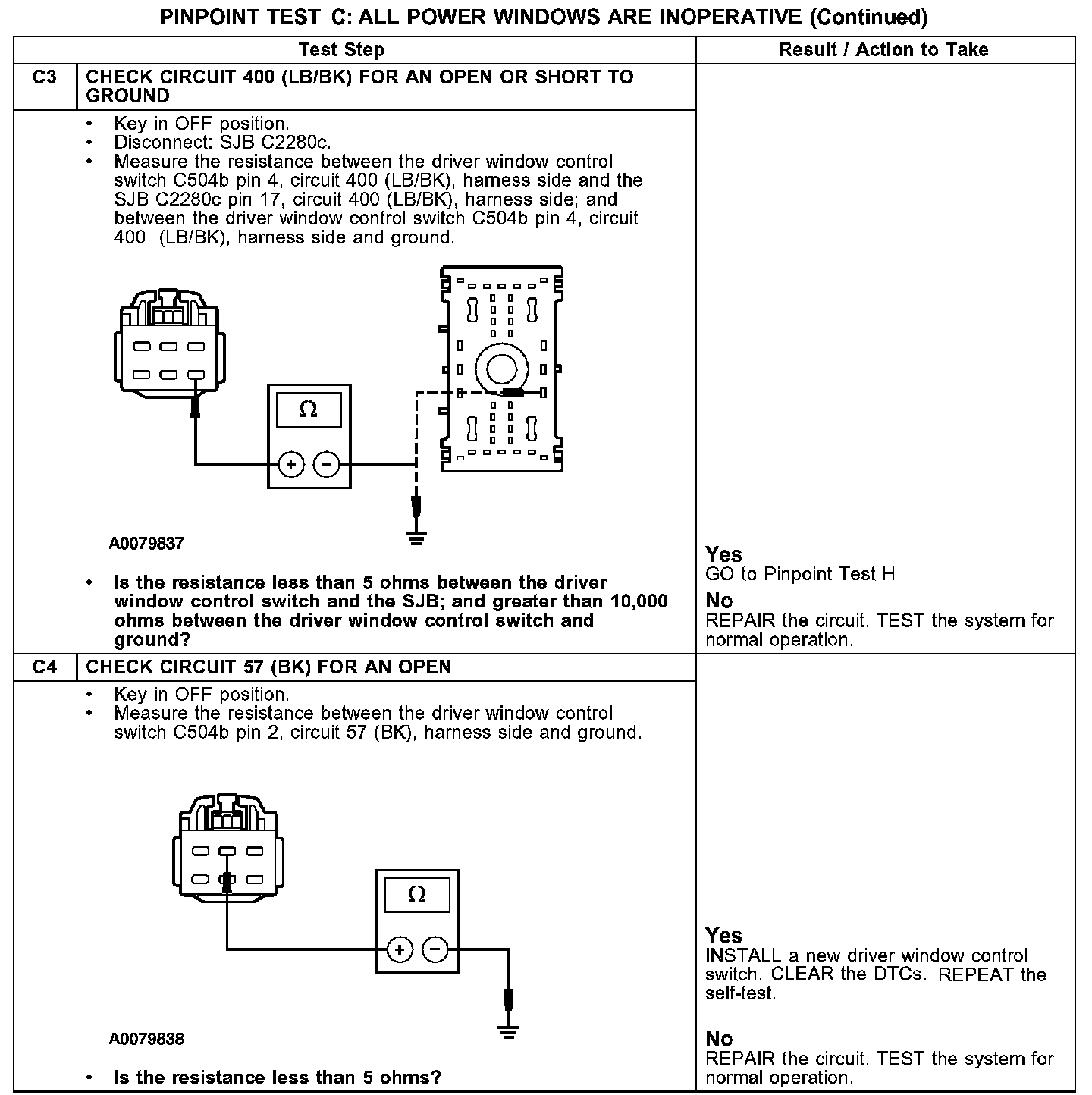 PINPOINT TEST C: ALL POWER WINDOWS ARE INOPERATIVE