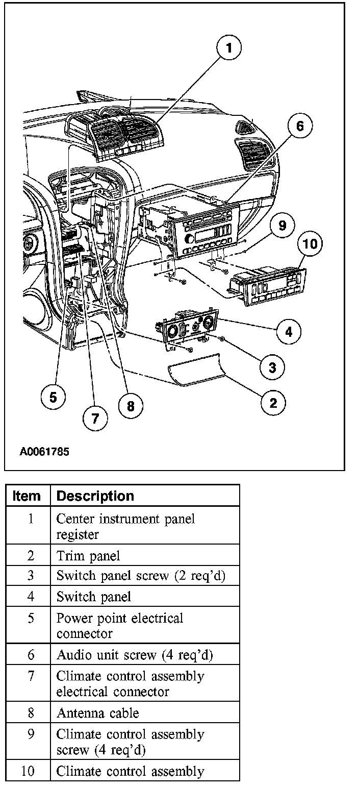 NOTE: If installing a new climate control assembly (DATC module), the new module must be configured for the vehicle.