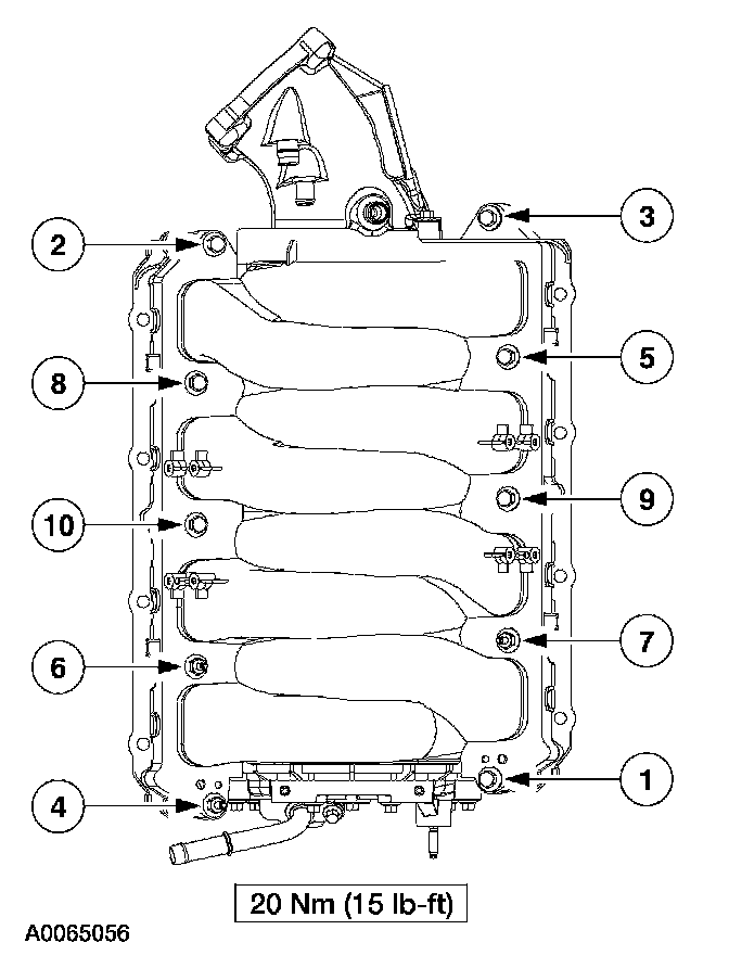 Tighten bolts 1 through 10 to 20 Nm (15 ft. lbs.).