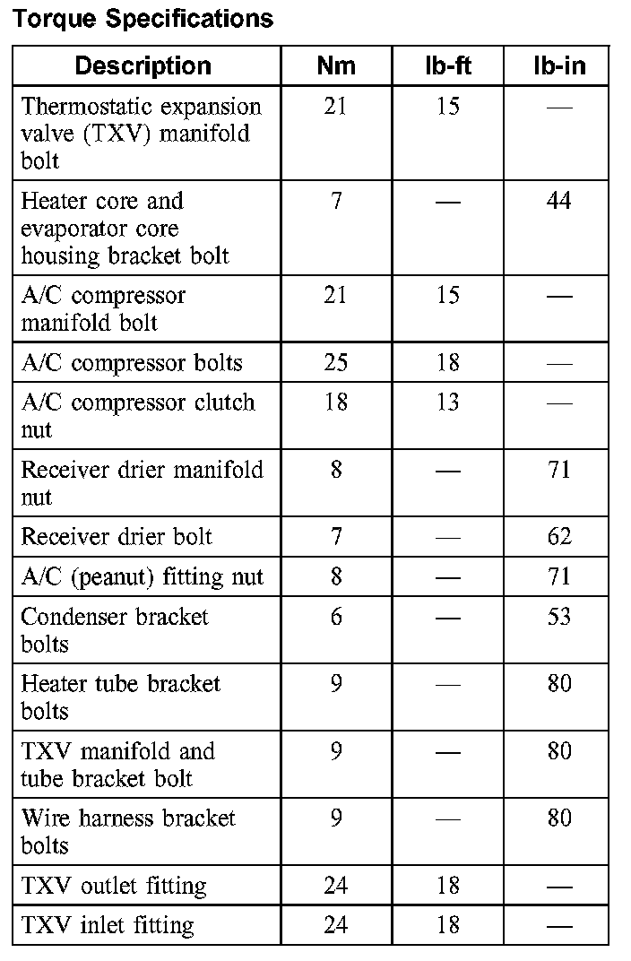 Torque Specifications:
