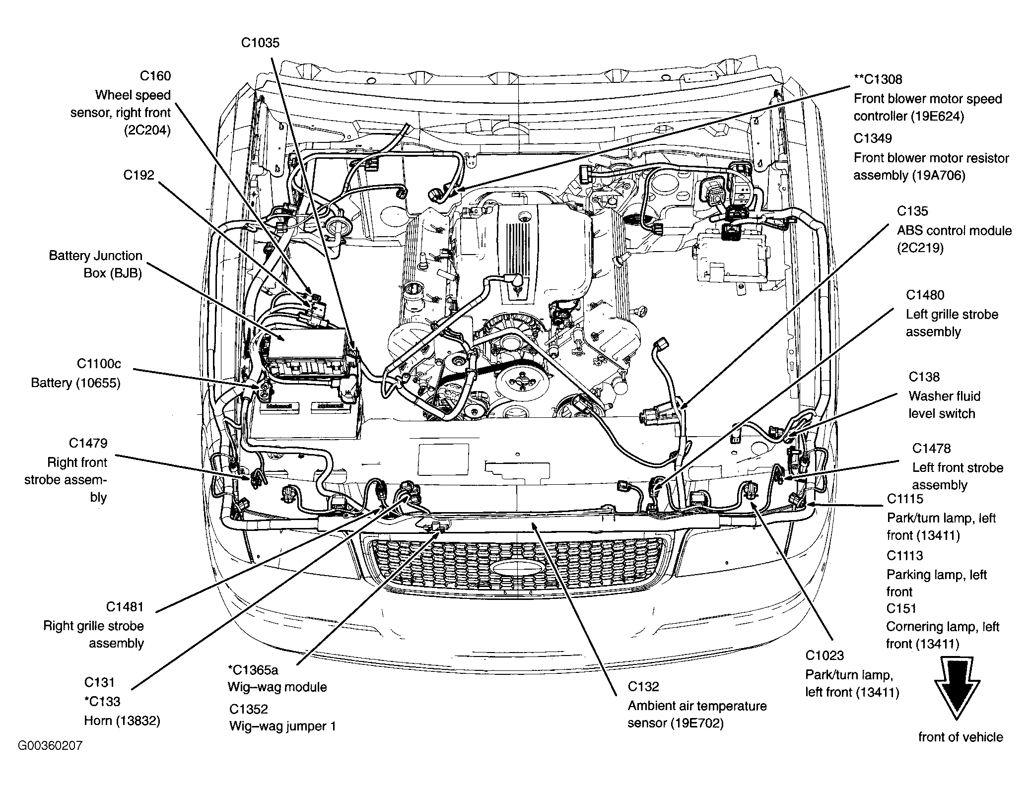 | Battery Junction Box (BJB) | In right front of engine compartment, behind battery. See Figure . |
