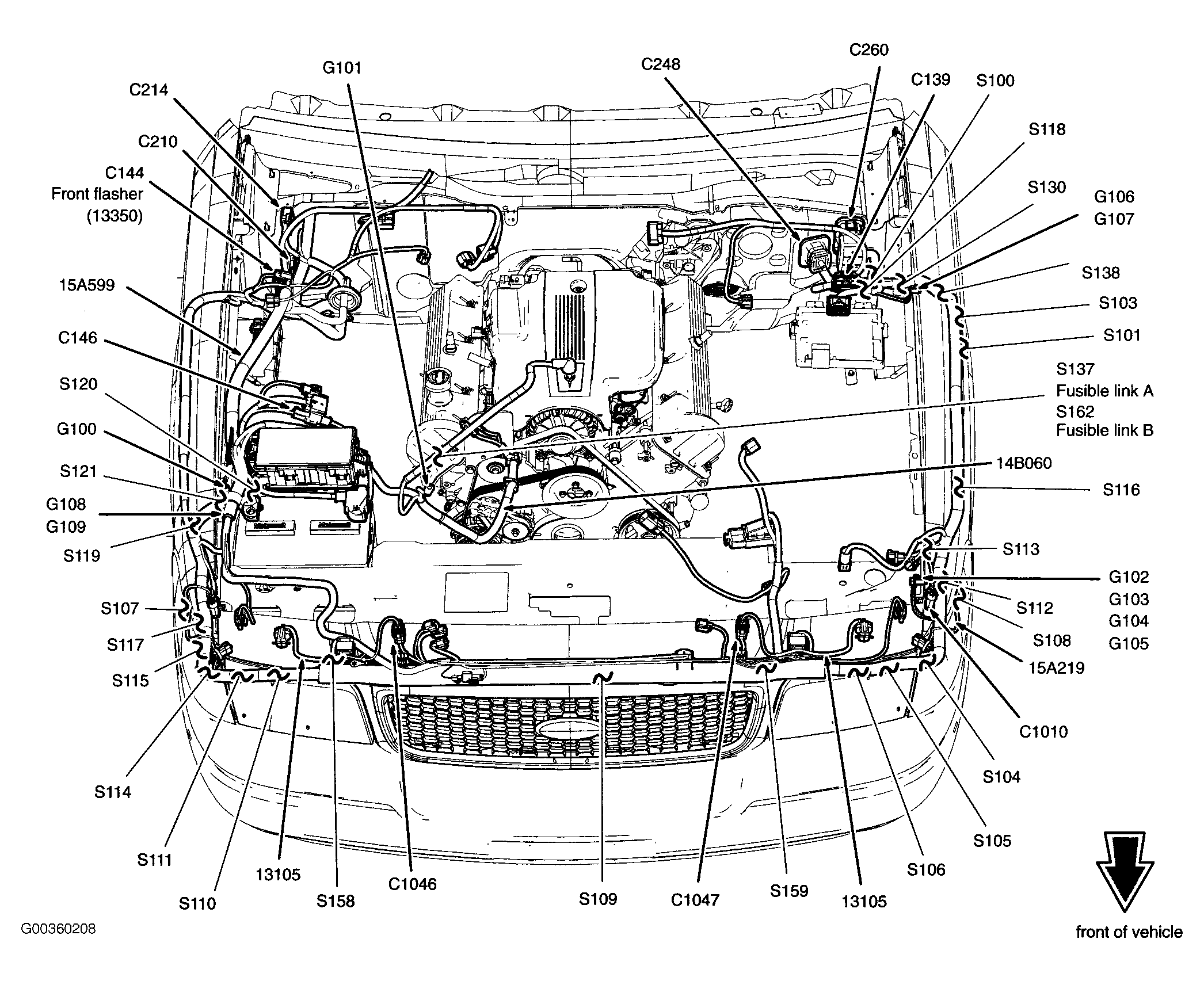 | Fusible Link A | In right center of engine compartment. See Figure . |