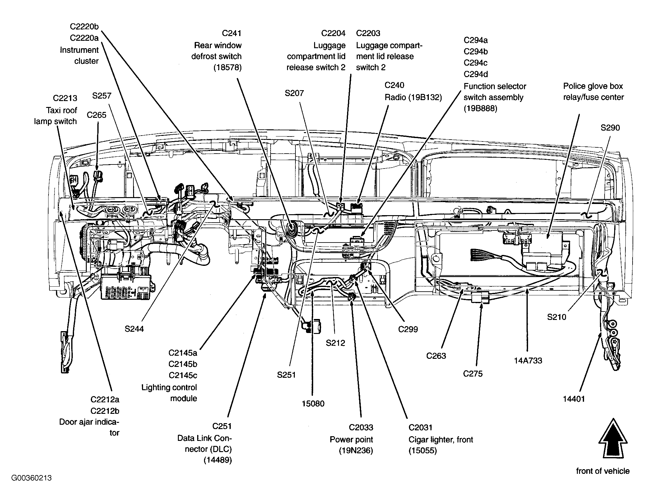 | Police Light Bar Relay/Fuse Center | In front of luggage compartment. See Figure . |