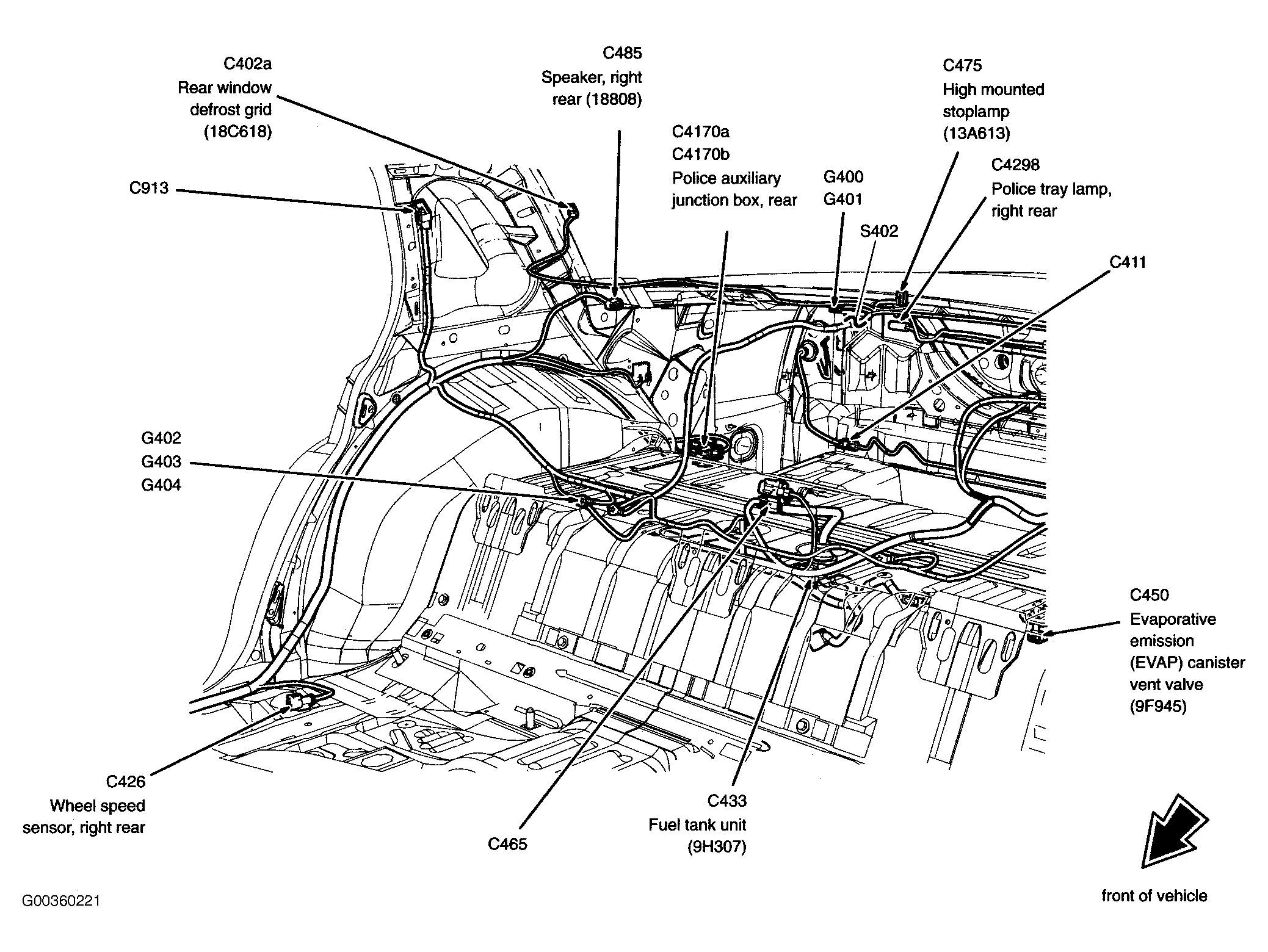 | Police Auxiliary Junction Box, Rear | Behind bottom center of rear seats. See Figure . |