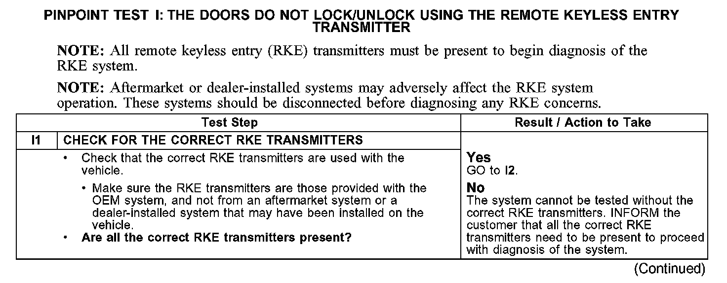 PINPOINT TEST I: THE DOORS DO NOT LOCK/UNLOCK USING THE REMOTE KEYLESS ENTRY TRANSMITTER