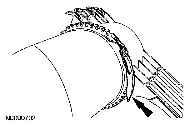 7. CAUTION: The grommet used to seal the engine air cleaner housing at the extension harness must be fully seated. Failure to do so will result in unmetered air entering the engine.