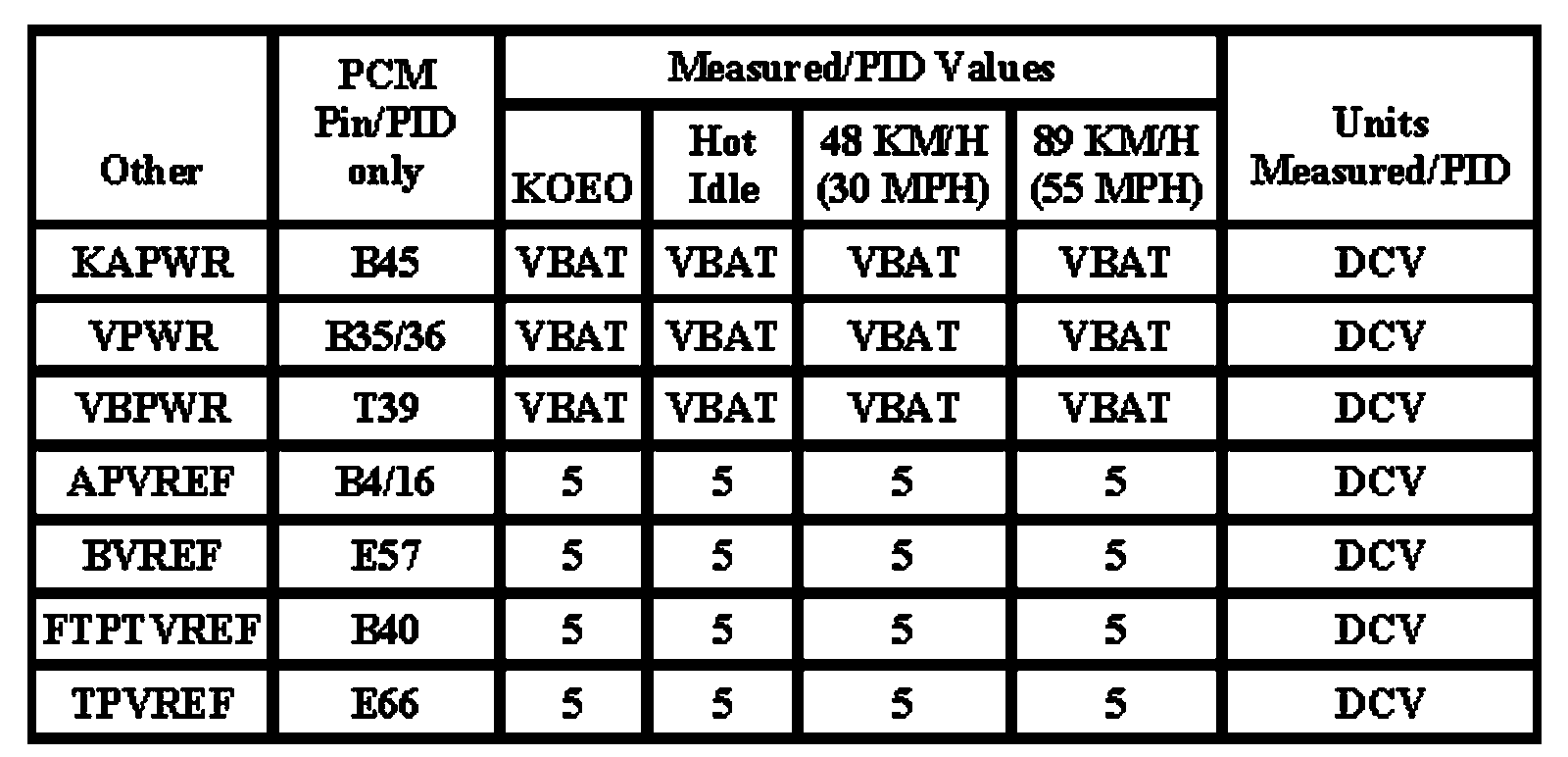 Note: All generic OBD readings under no load (PARK or NEUTRAL).