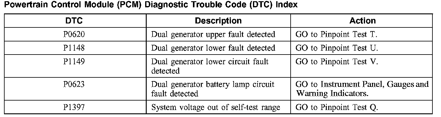 Powertrain Control Module (PCM) Diagnostic Trouble Code (DTC) Index