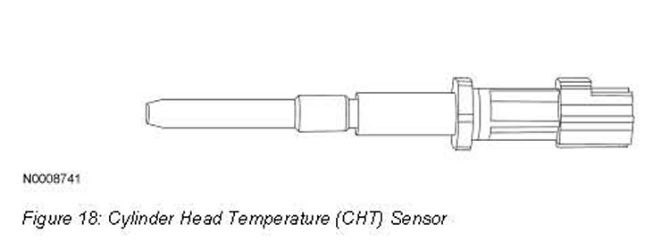 The CHT sensor is installed in the aluminum cylinder head and measures the metal temperature. The CHT sensor can provide complete engine temperature information and can be used to infer coolant temperature. If the CHT sensor conveys an overheating condition to the PCM, the PCM then initiates a fail-safe cooling strategy based on information from the CHT sensor. A cooling system failure such as low coolant or coolant loss could cause an overheating condition. As a result, damage to major engine components could occur. Using both the CHT sensor and fail-safe cooling strategy, the PCM prevents damage by allowing air cooling of the engine and limp home capability. For additional information, refer to Powertrain Control Software Fail-Safe Cooling Strategy. Powertrain Control Software