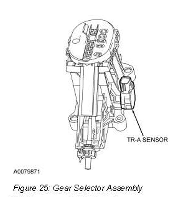 The TR sensor communicates the gear selector position that the driver selects to the PCM. The PCM determines a gear mode based on the TR input and the vehicle speed signal. The PCM then broadcasts a gear mode message over the communication link. The transmission control module (TCM) uses the gear mode message to engage the transaxle in the gear that the driver selected. The other control modules use the gear mode message to control the rear lamps or a brake shift interlock solenoid. The TR sensor is mounted at the base of the gear selector assembly and the sensor shaft is moved by the selector.