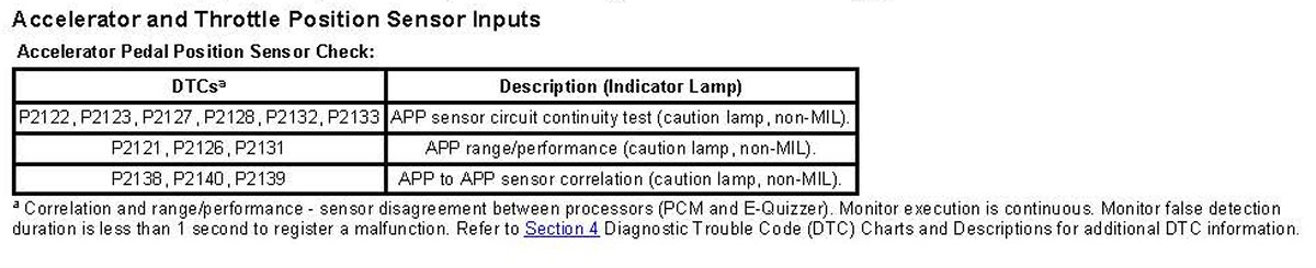 4. The 3 pedal position signals provide a correct input to the PCM should any one signal have a fault. The PCM knows if a signal is wrong by calculating where it should be, inferred from the other signals. A value is substituted for a faulty signal if 2 out of the 3 signals are bad.