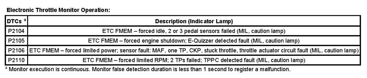 The ETC monitor system is distributed across 2 processors within the PCM: the main powertrain central processing unit (CPU) and a monitoring processor called an enhanced quizzer (E-Quizzer) processor. The primary monitoring function is carried out by the independent plausibility check (IPC) software, which resides on the main processor. It is responsible for determining the driver demanded torque and comparing it to an estimate of the actual torque delivered. If the generated torque exceeds driver demand by a specified amount, the IPC takes appropriate action.