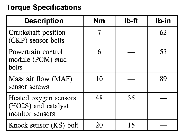 Torque Specifications: