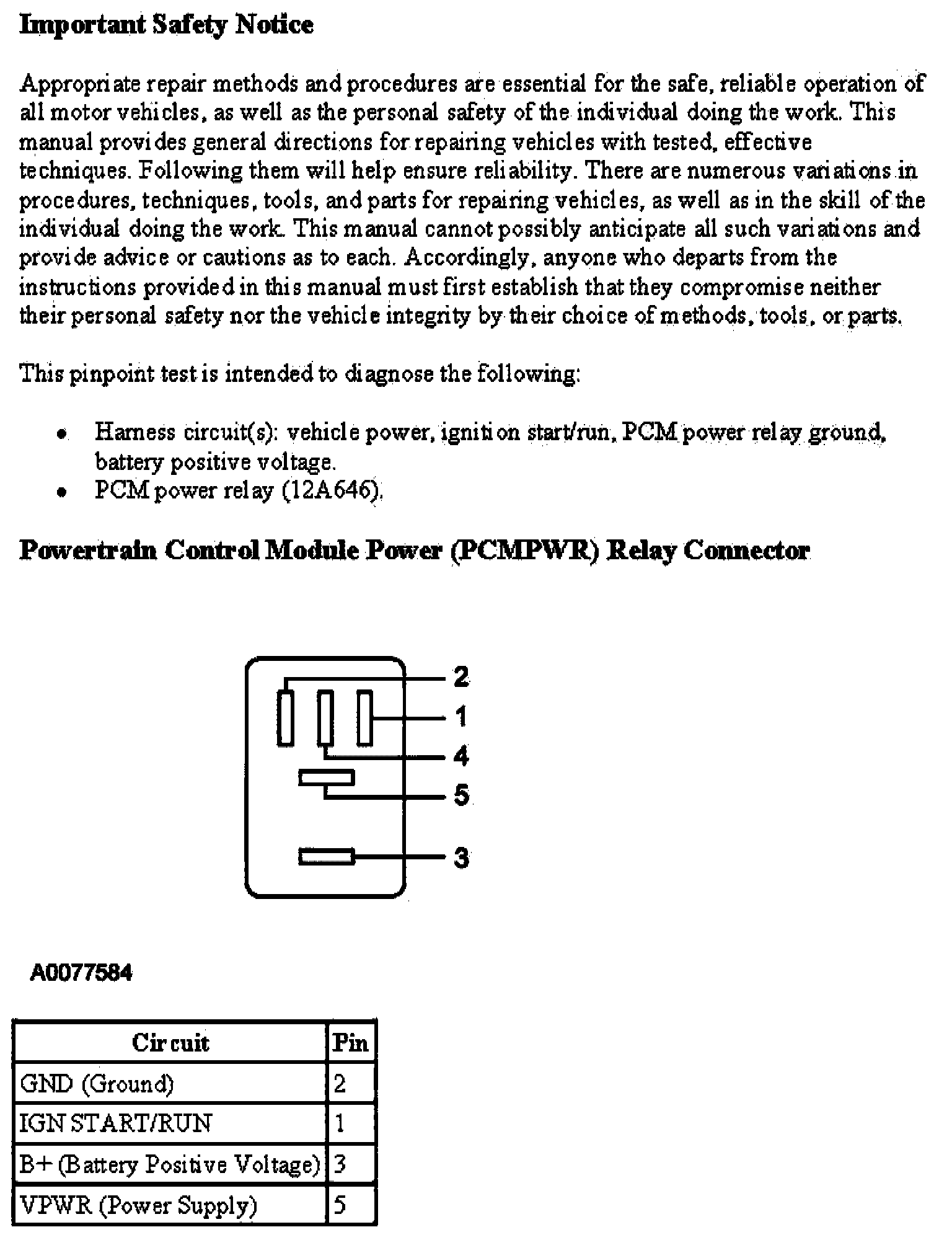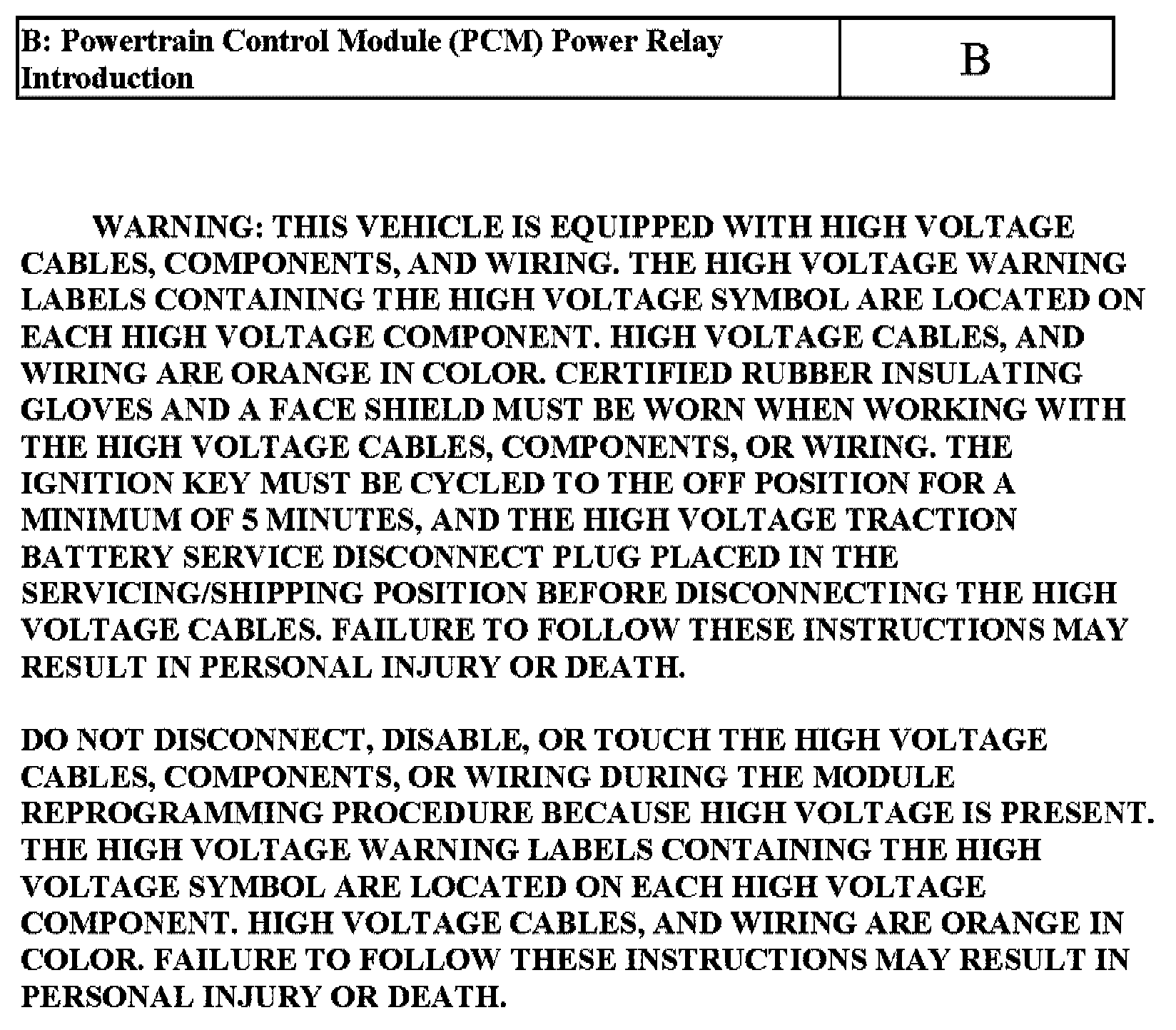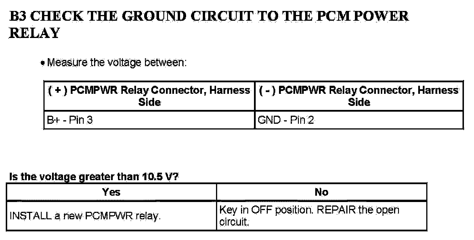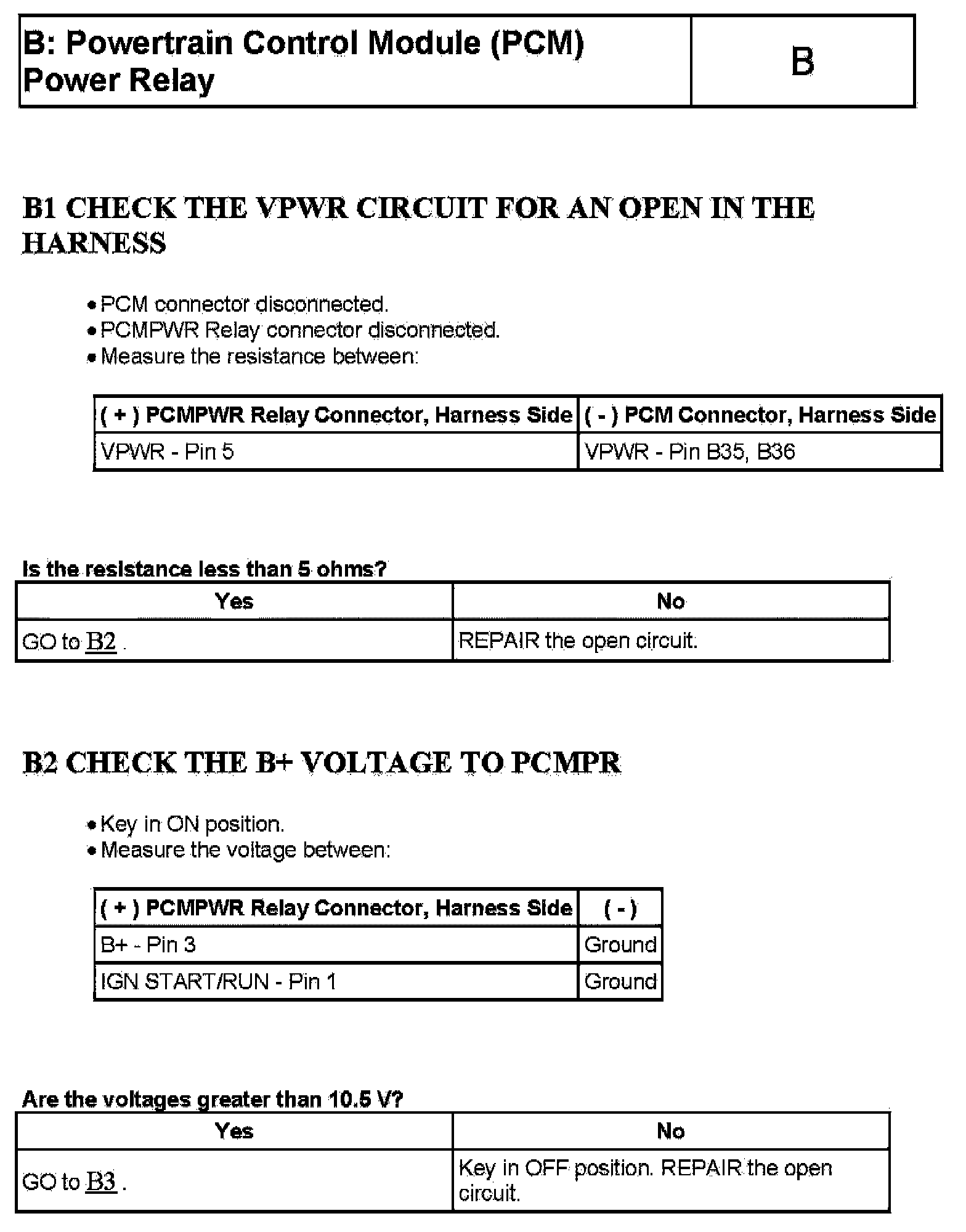 Test B: Powertrain Control Module (PCM) Power Relay