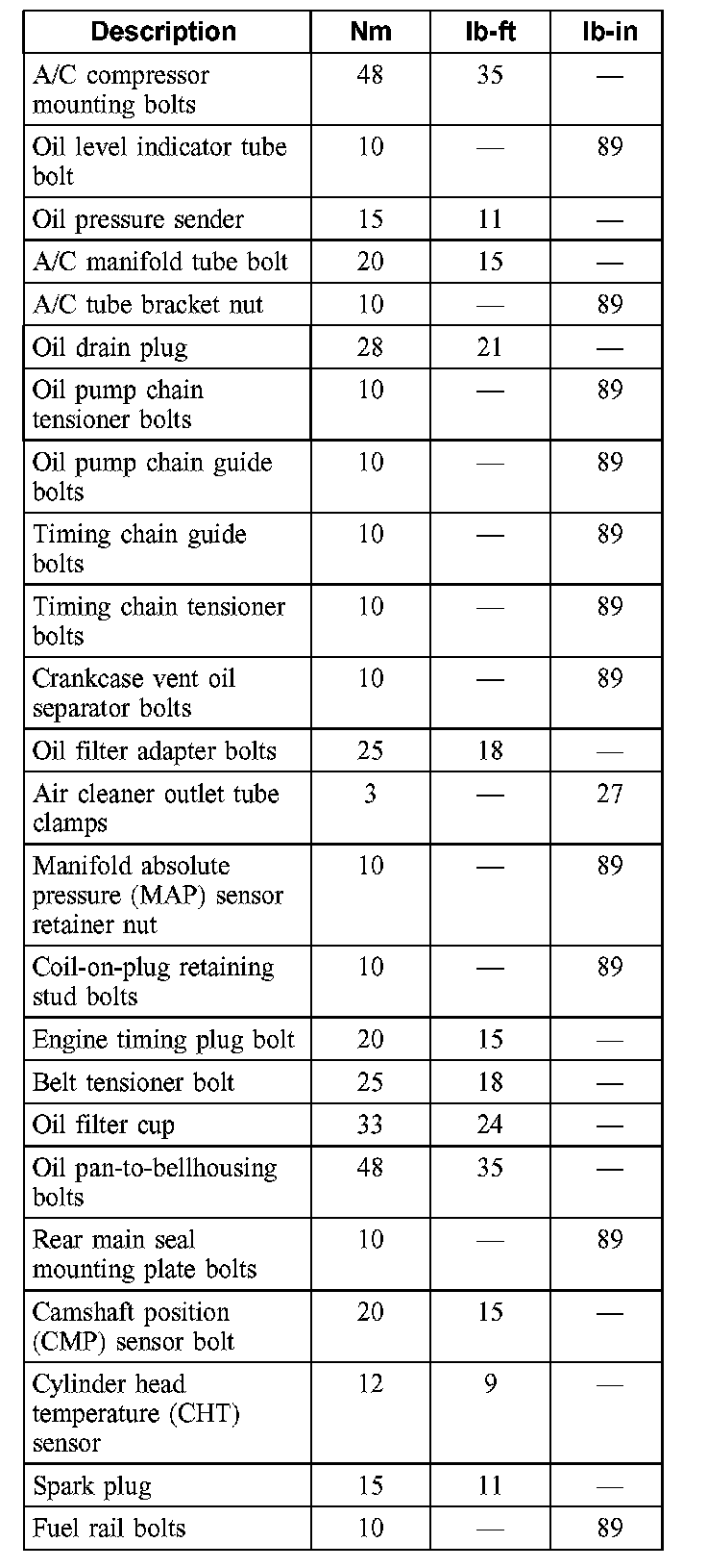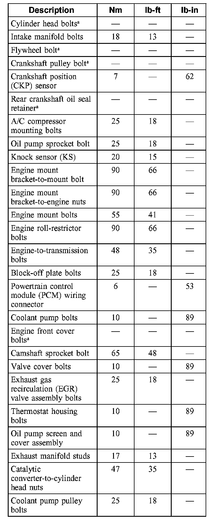 Torque Specifications