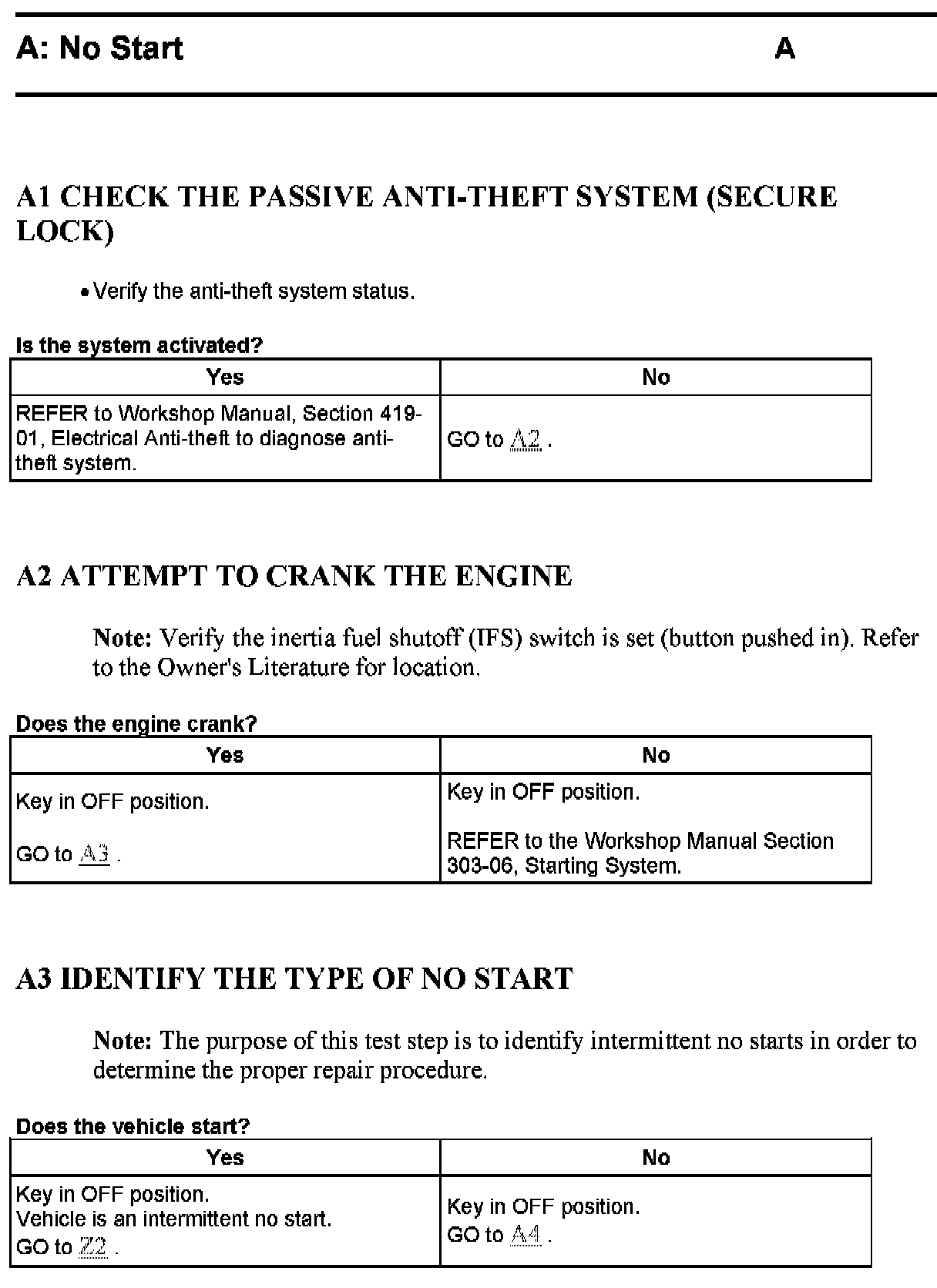 PINPOINT TEST A: NO START