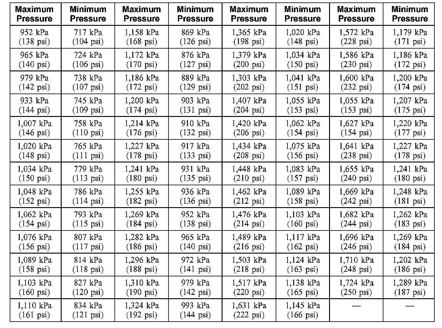 Compression Pressure Limit Chart