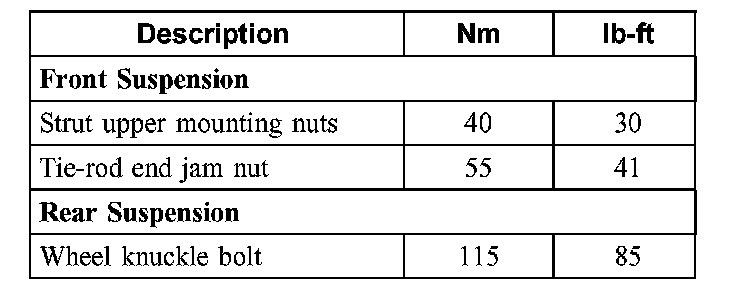 Torque Specifications