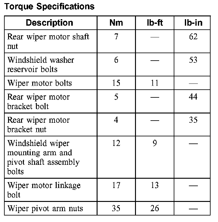 Torque Specifications