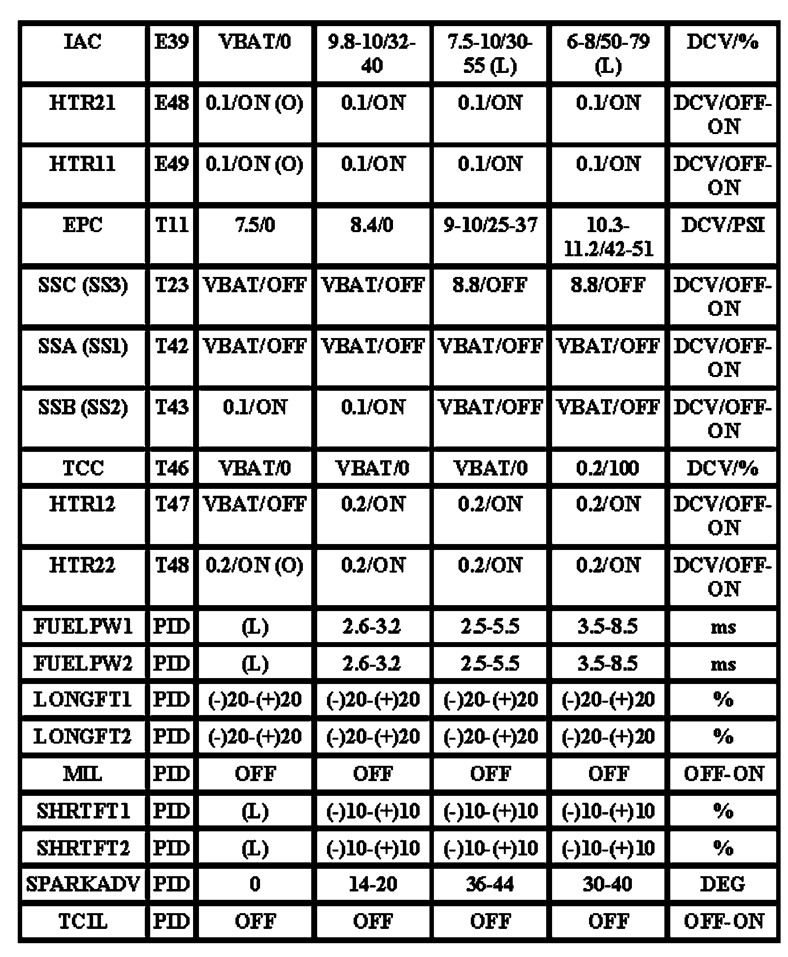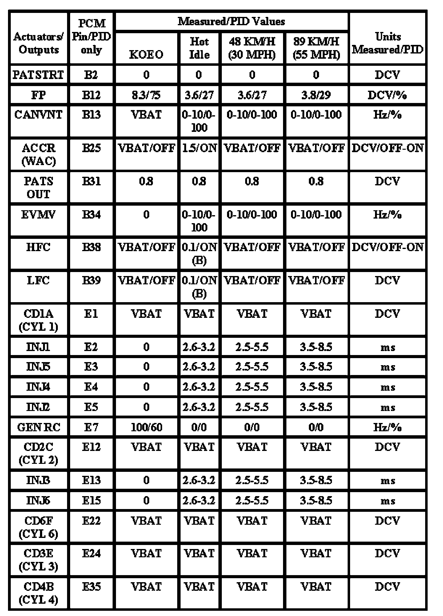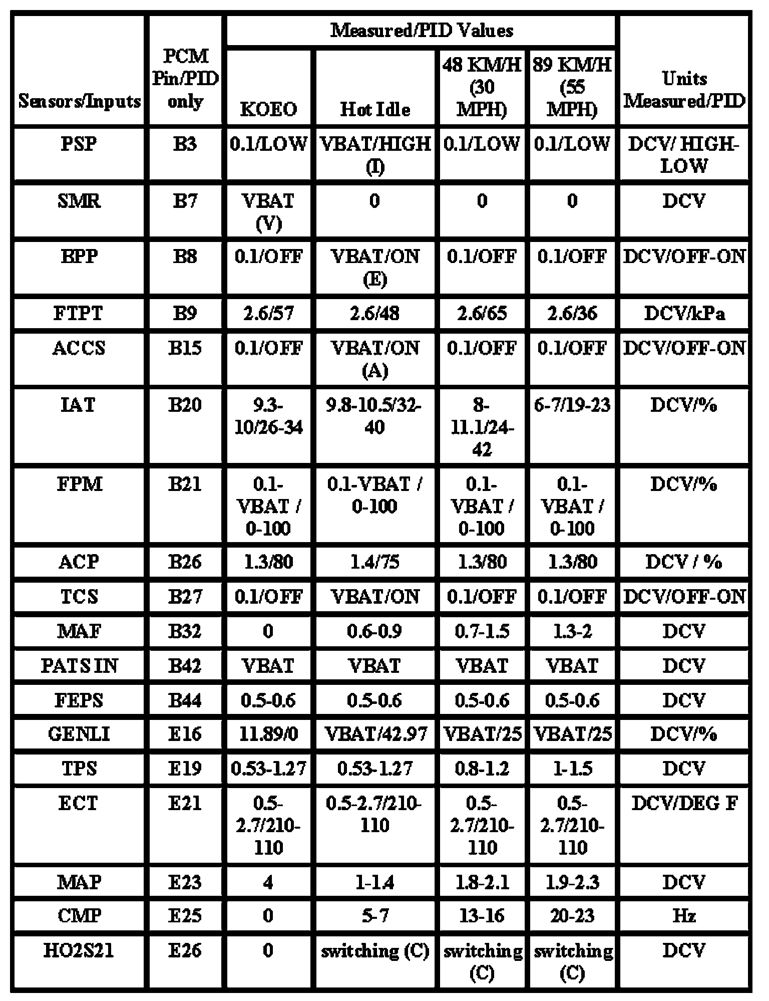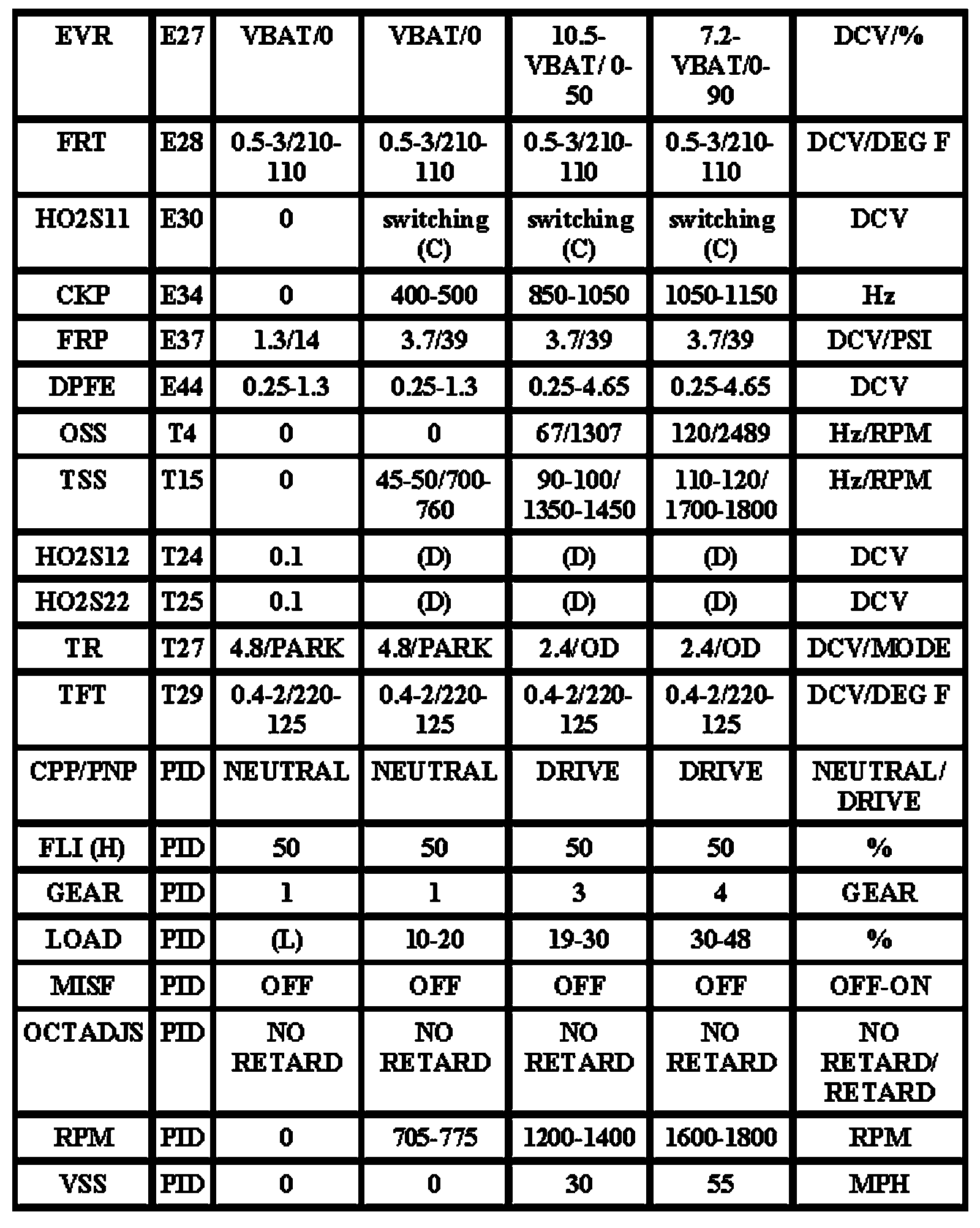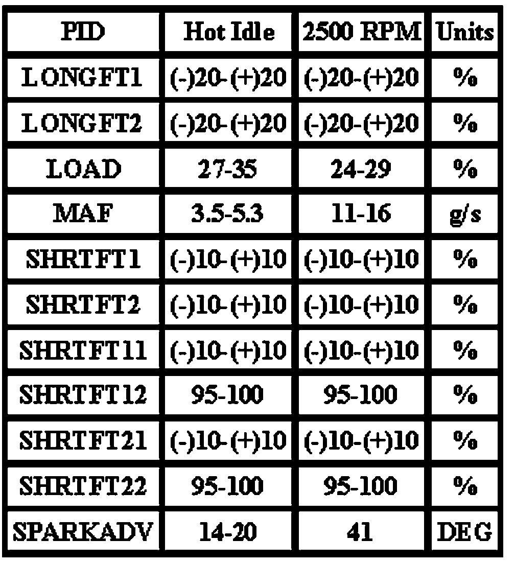Note: All generic OBD readings under no load (PARK or NEUTRAL),