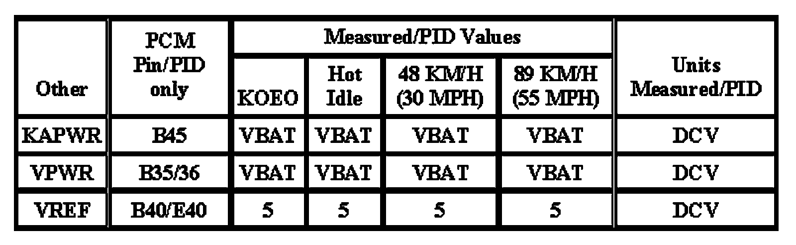 The Typical Diagnostic Reference Value Charts do not display fault PIDs. These are PIDs which indicate a hard fault with the circuit. They display a value of "YES" or "NO" and are PIDs ending with an "F".
