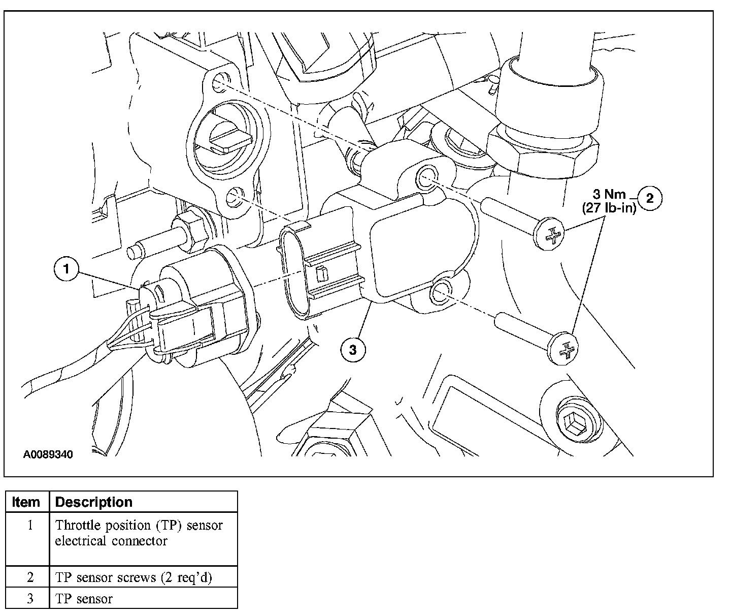 - To install, tighten to 3 Nm (27 lb-in).