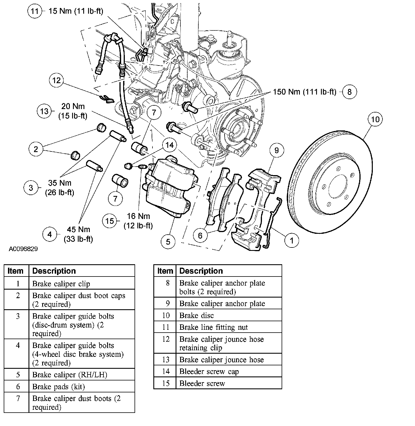 Front Disc Brake System - Exploded View: