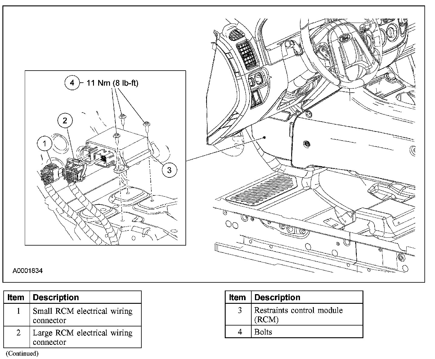 - When installing a new restraints control module (RCM), always make sure the correct RCM is being installed. If an incorrect RCM is installed, erroneous DTCs will result.